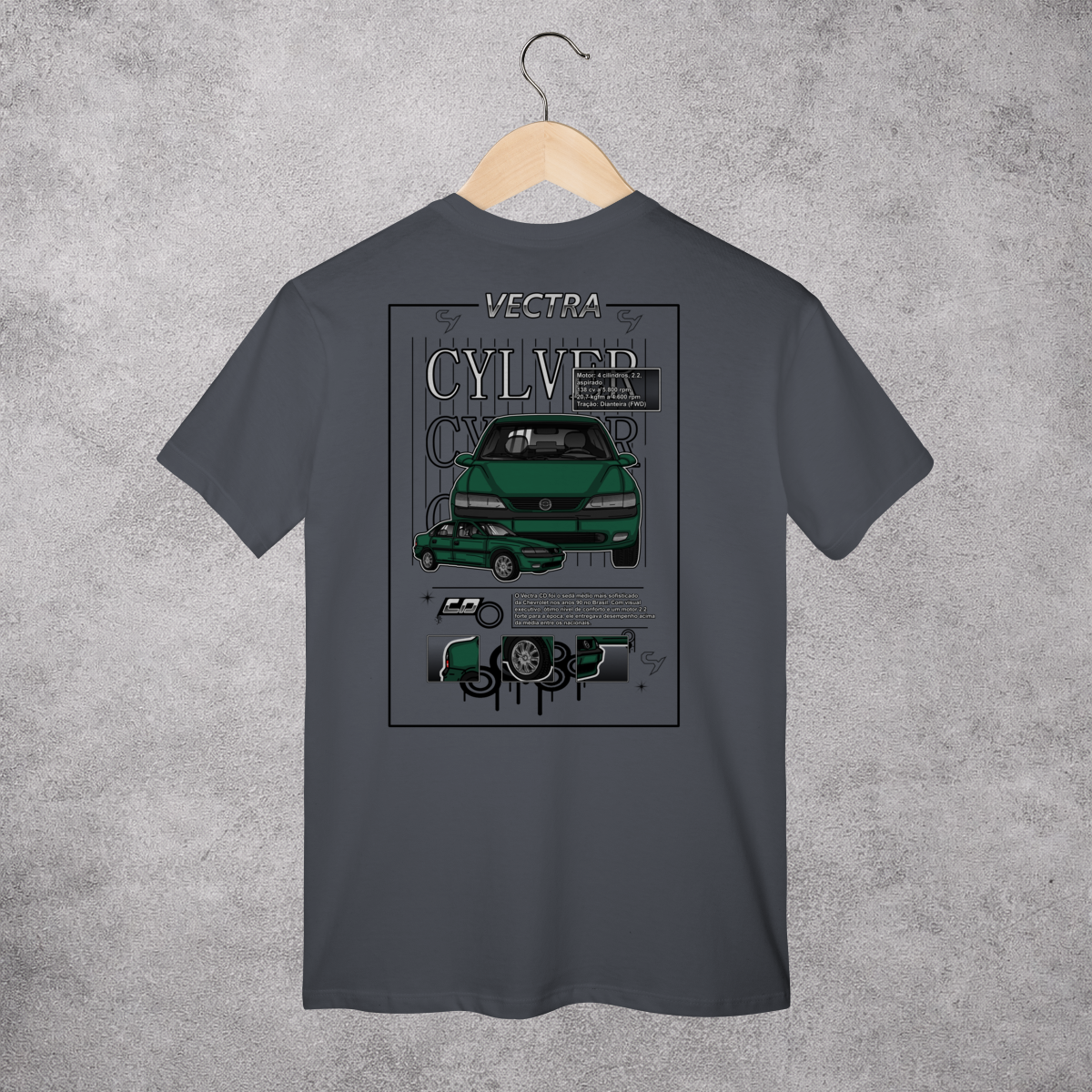 Tecido confortável em algodão, estampa digital de alta qualidade e modelagem regular. Ideal para o dia a dia, rolês e encontros automotivos.