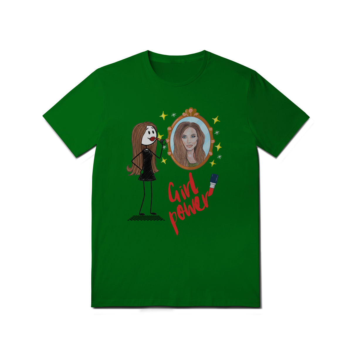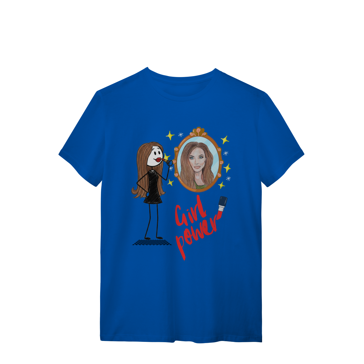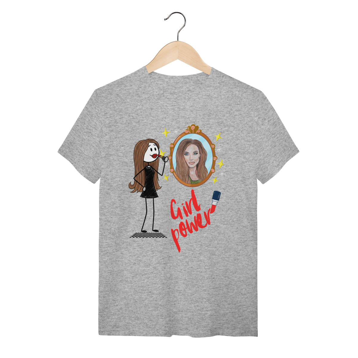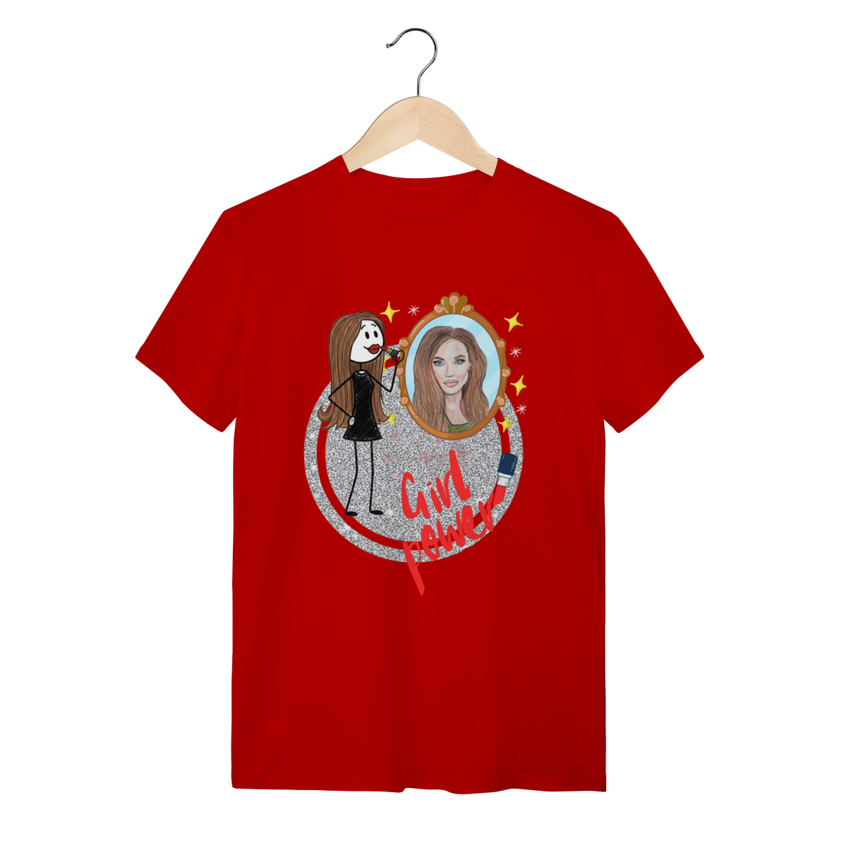 A T-Shirt “Girl Power” traz a força e a beleza feminina em uma ilustração cheia de atitude: uma personagem estilizada se maquiando diante de um espelho que reflete sua versão poderosa, confiante e pronta para conquistar o mundo. Com traços modernos, brilho e muita personalidade, a peça celebra autoestima, coragem e autenticidade.
