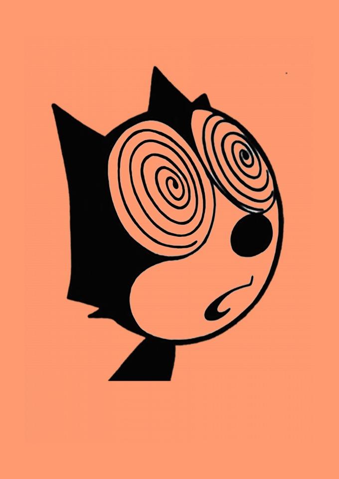 Estampa de desenho animado do ano de 1914, intitulada como "Felix the cat". Ideal para quem curte o movimento retrô, e humorístico.