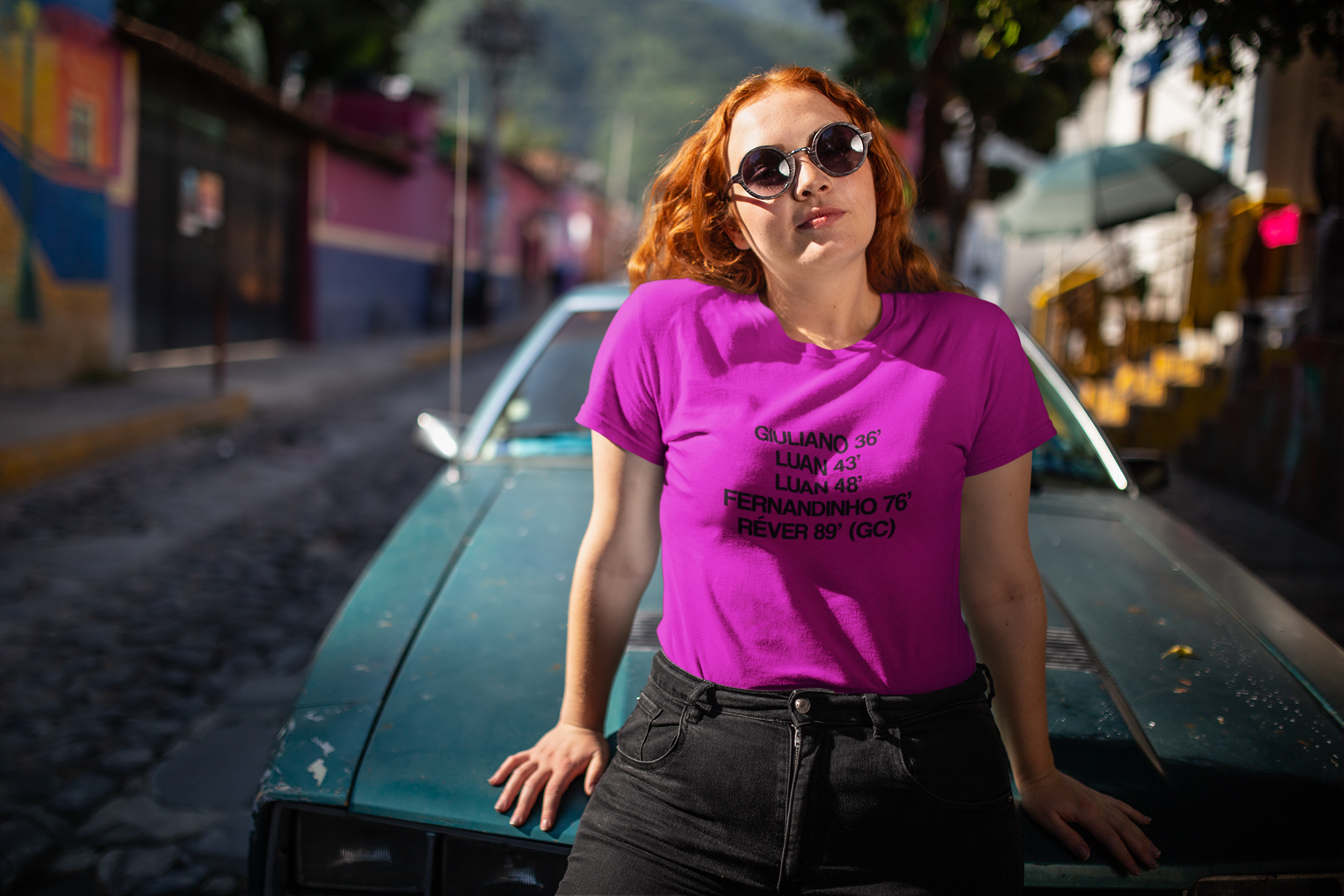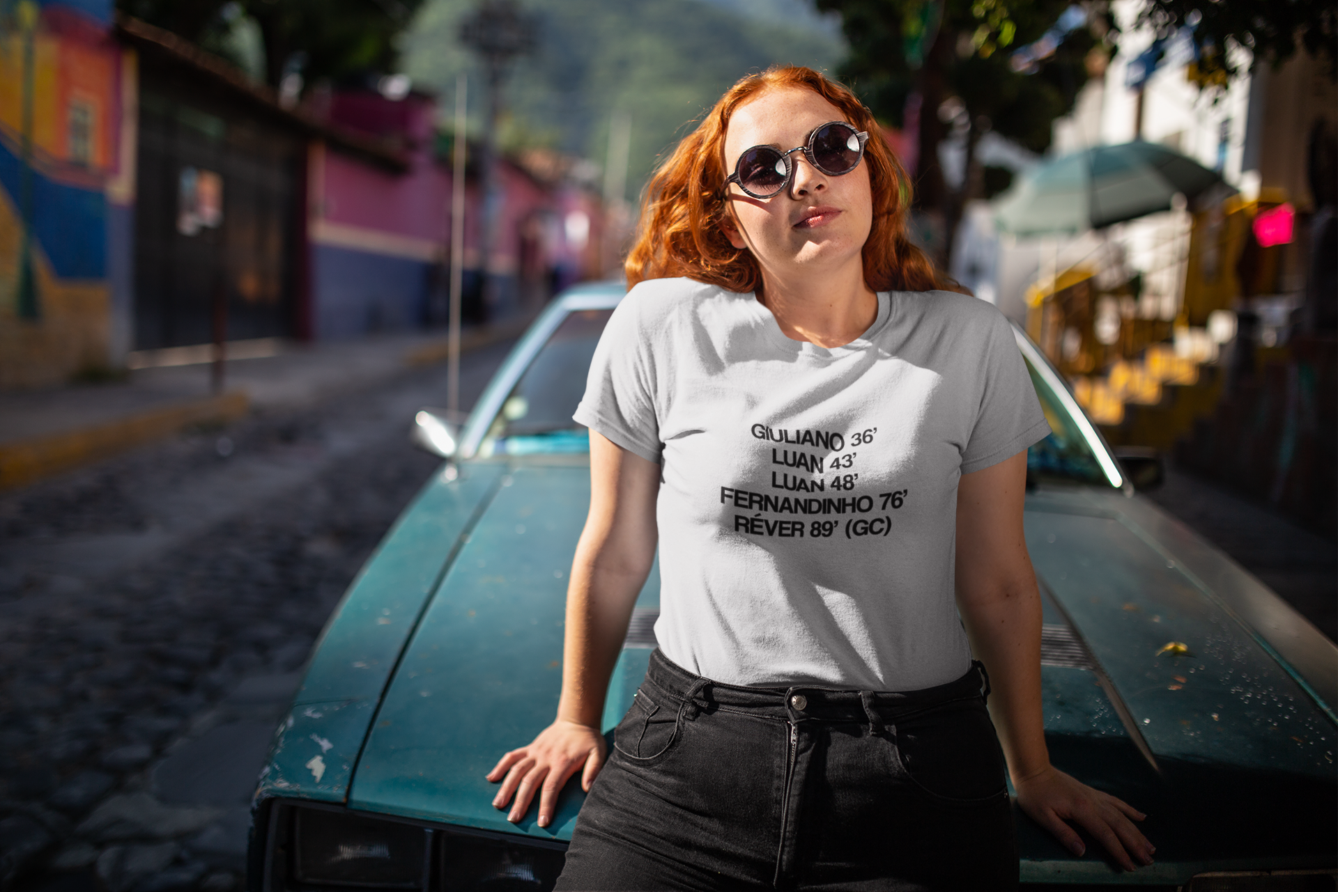 Agora, tu, mulher gremista, podes reviver essa glória com a baby look exclusiva da 3 Cores, que traz os nomes das autoras dos gols e os minutos em que eles foram marcados. Um tributo a uma vitória que entrou para a história e deixou os colorados sem palavras.