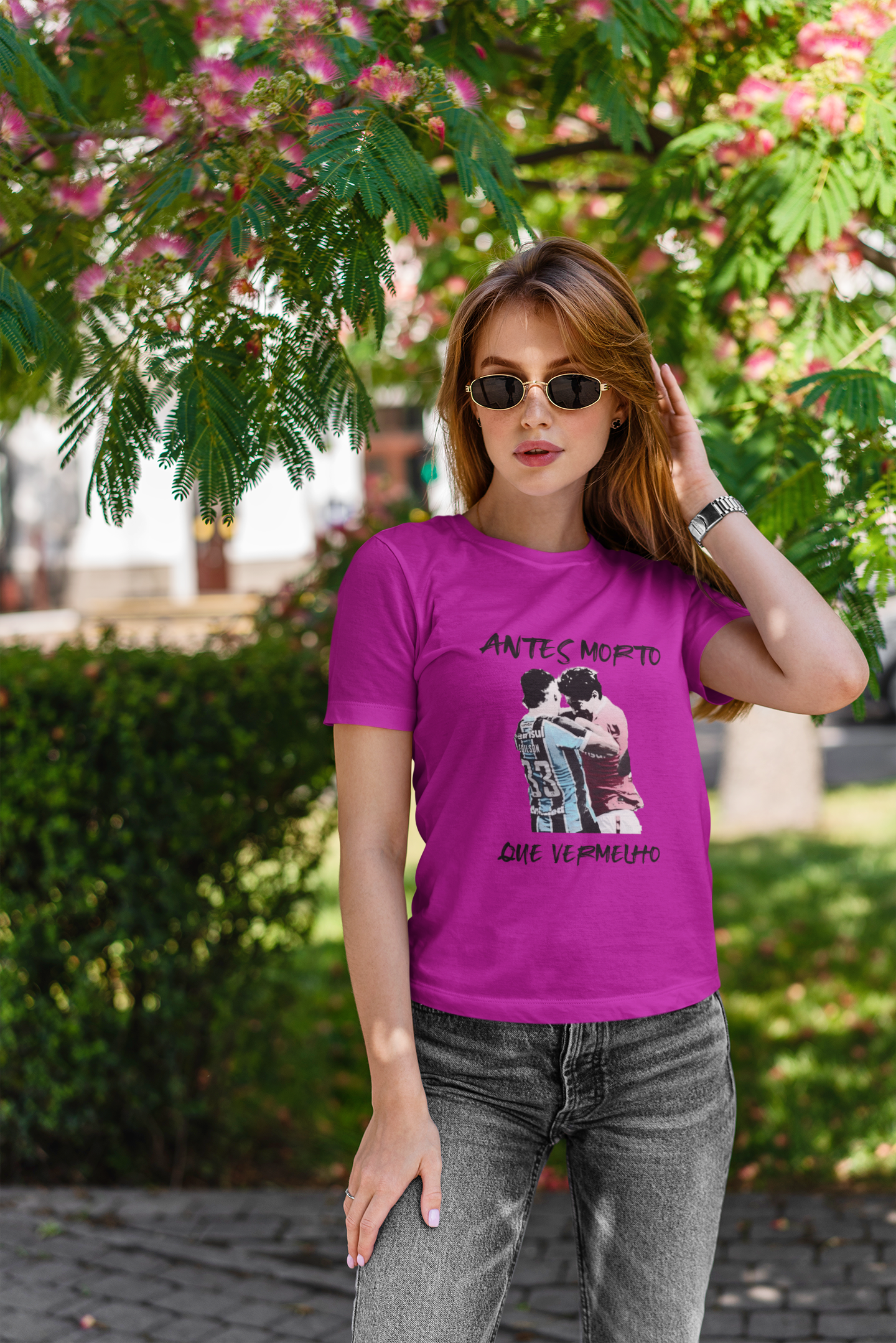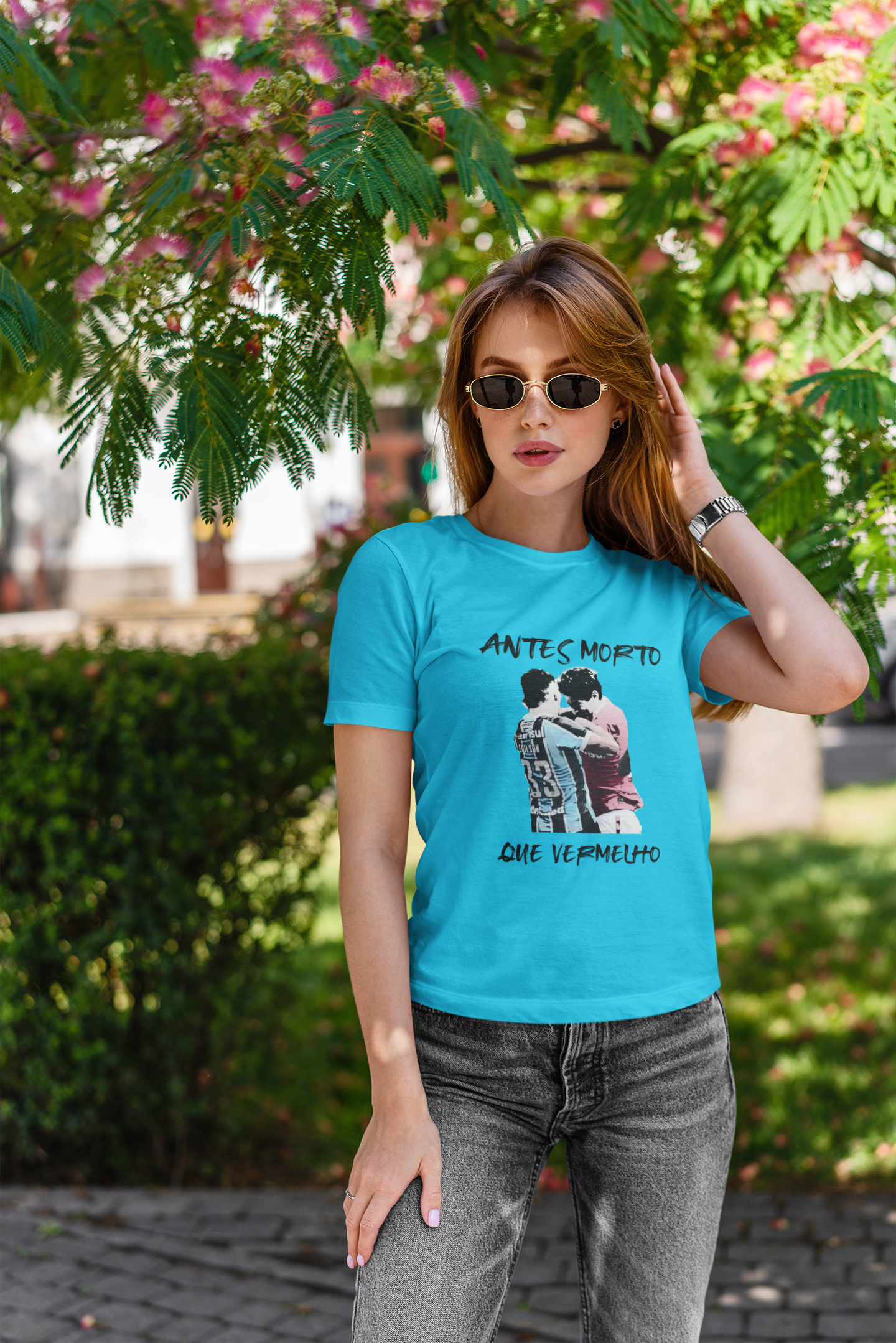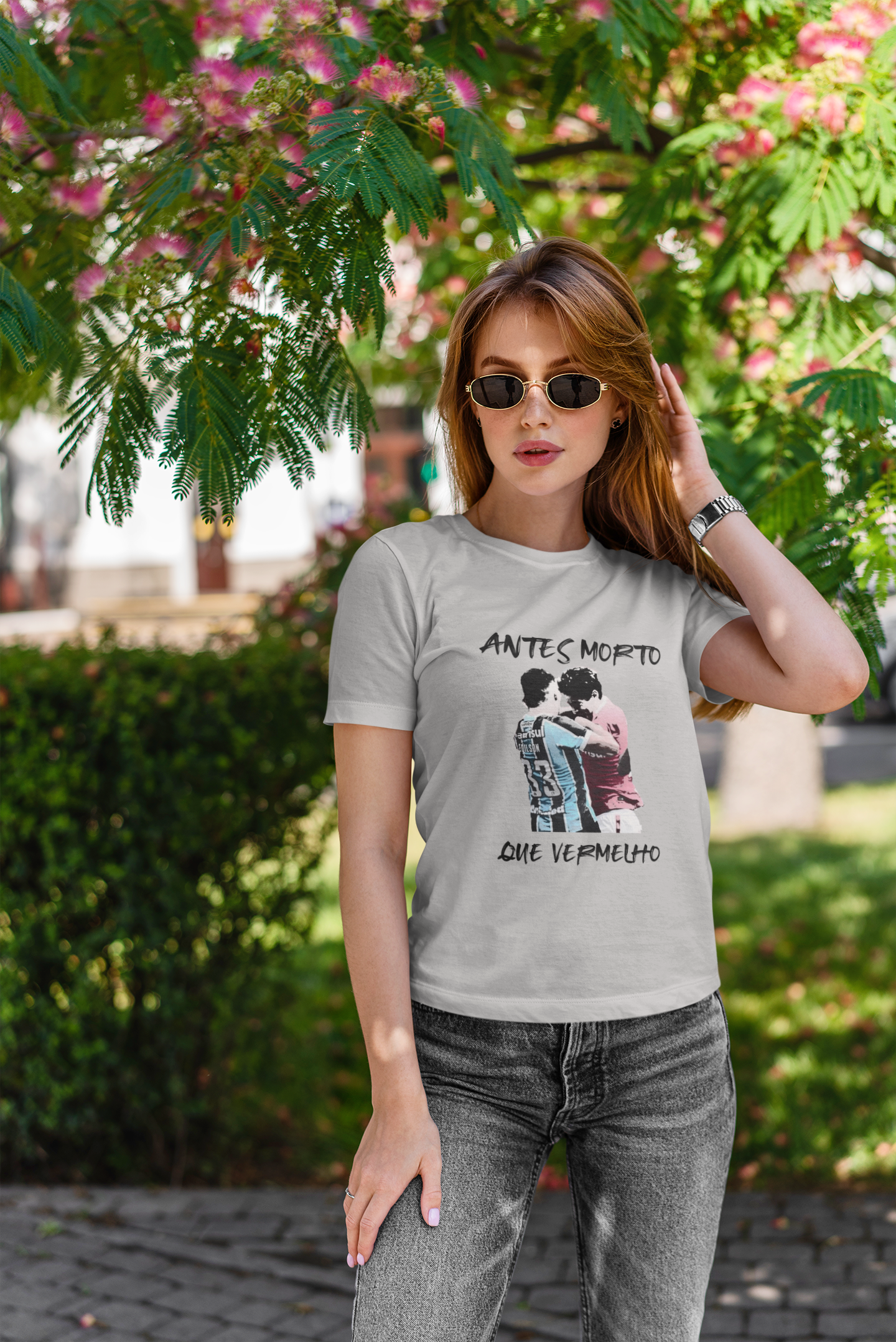 Sabemos que a rivalidade Grenal é mais do que uma simples disputa de cores; é uma tradição, uma história que nos faz vibrar e celebrar cada vitória com intensidade. Com a nossa baby look exclusiva "Antes Morto Que Vermelho", podes mostrar ao mundo o teu amor pelo Grêmio e o teu alívio por vestir as cores certas!