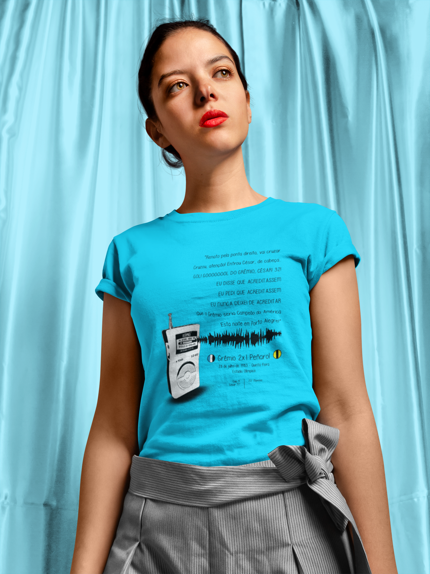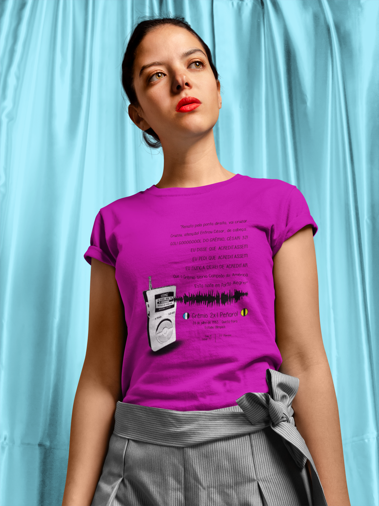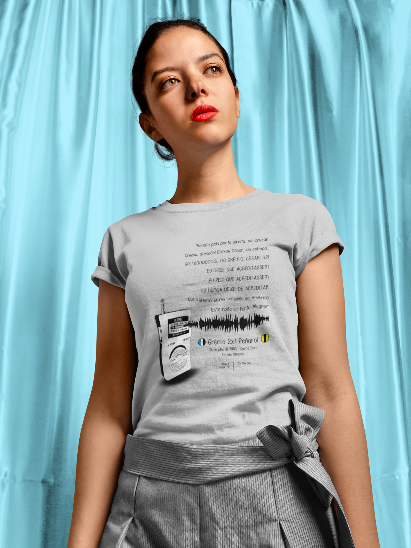 Com a estampa da inesquecível narração de Armindo Antônio Ranzolim, esse modelo exclusivo carrega consigo o eco da vitória que consagrou o Grêmio na Libertadores de 1983. Cada linha, cada curva da camiseta é um tributo ao momento épico que fez o coração tricolor pulsar mais forte.