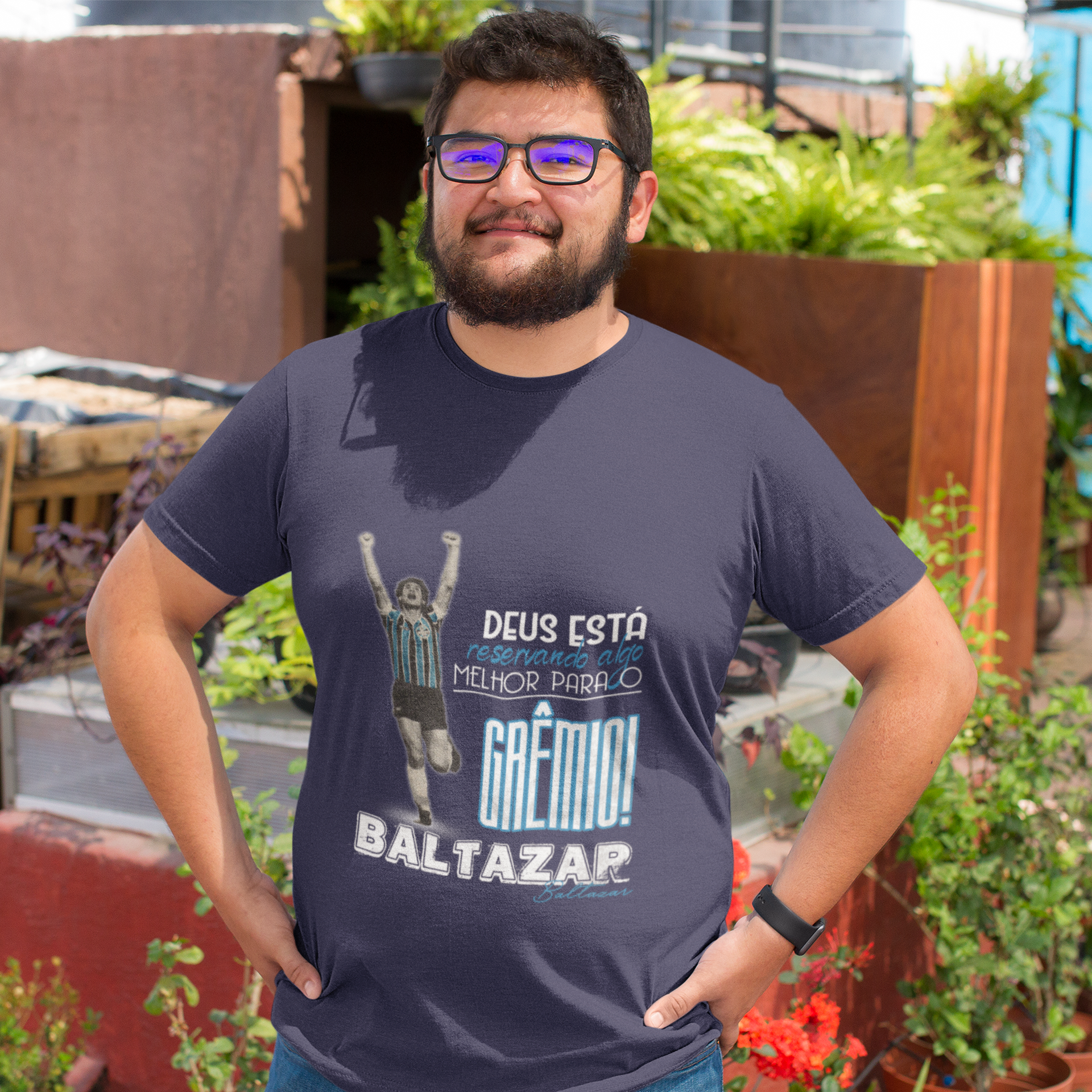 Torcedor gremista, essa camiseta é um tributo à crença, à emoção e à glória que Baltazar nos proporcionou naquela conquista memorável. A arte retrata a comemoração efusiva de nosso centroavante após o gol que nos trouxe o título, acompanhada de suas palavras que ecoam até hoje: "Deus está reservando algo melhor para o Grêmio."