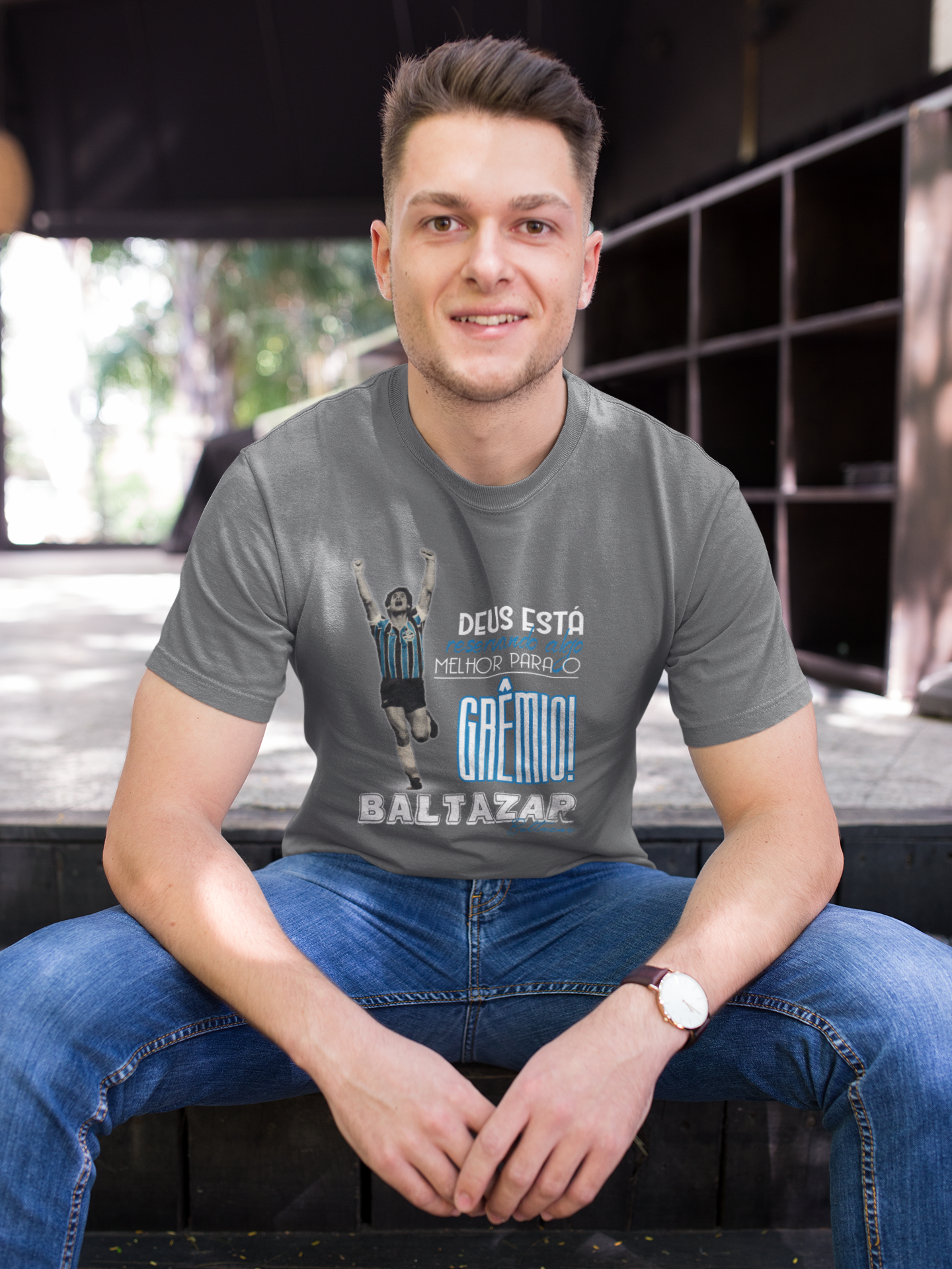 Torcedor gremista, essa camiseta é um tributo à crença, à emoção e à glória que Baltazar nos proporcionou naquela conquista memorável. A arte retrata a comemoração efusiva de nosso centroavante após o gol que nos trouxe o título, acompanhada de suas palavras que ecoam até hoje: "Deus está reservando algo melhor para o Grêmio."