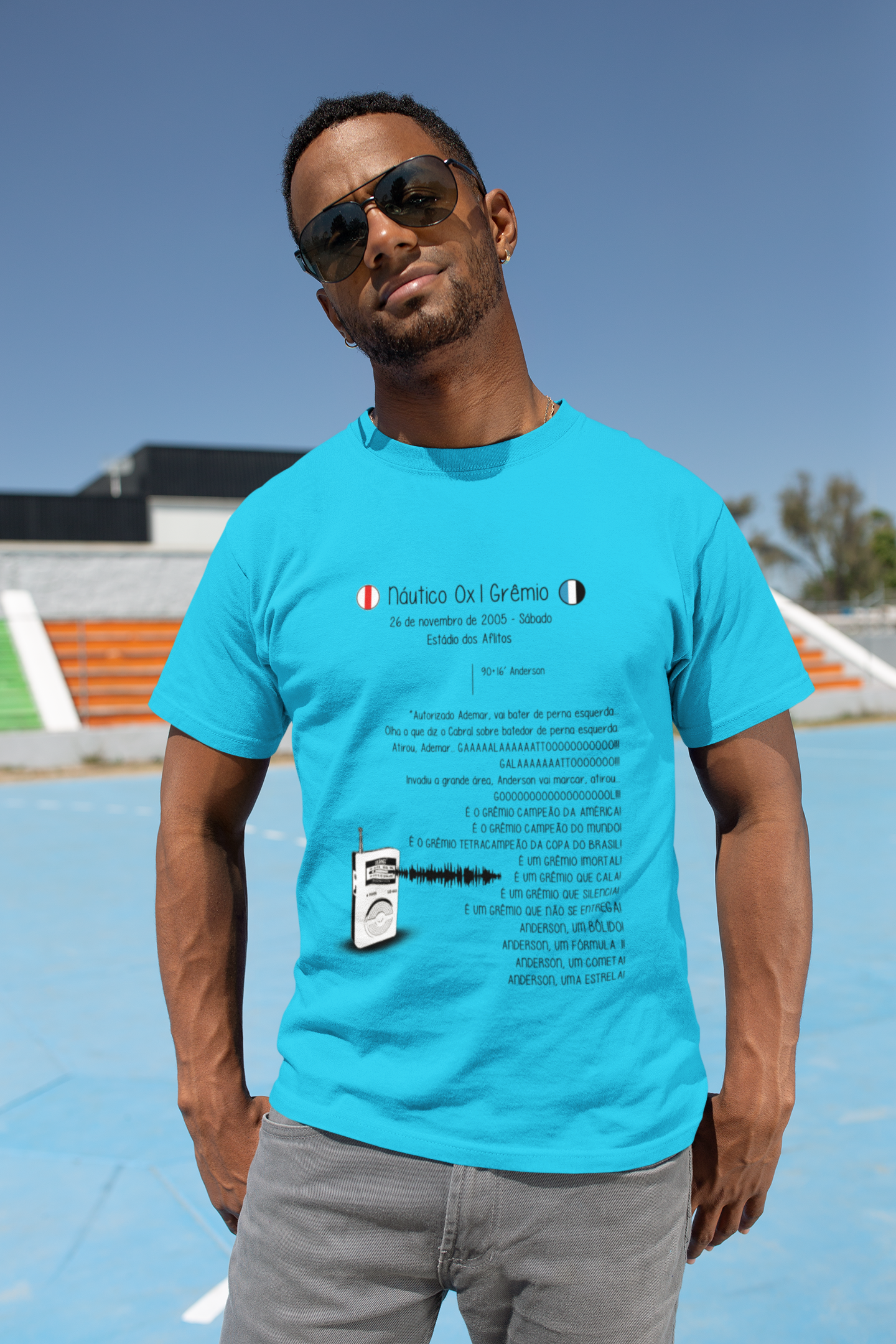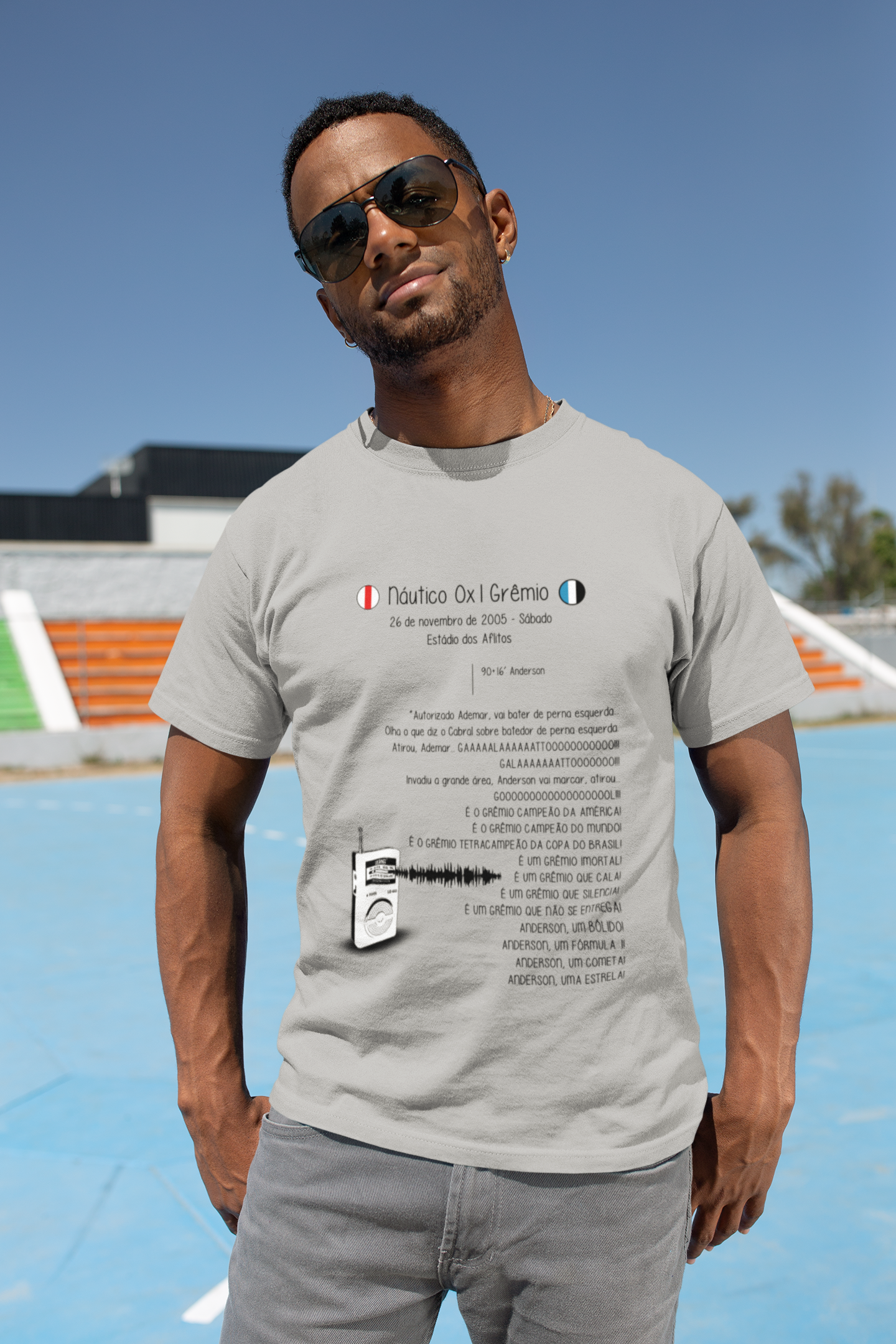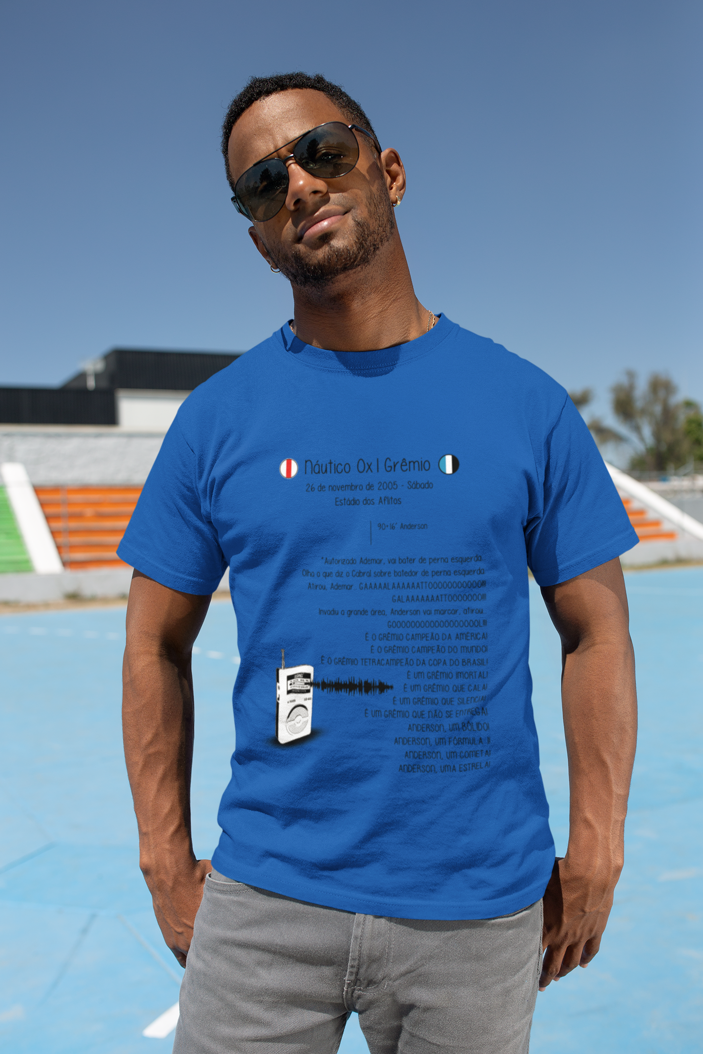 Esta camiseta é mais do que uma simples peça de roupa, é uma declaração de amor ao Grêmio. Com um design exclusivo que captura a essência daquele jogo inesquecível, estarás sempre pronto para mostrar o teu orgulho pelo nosso time.