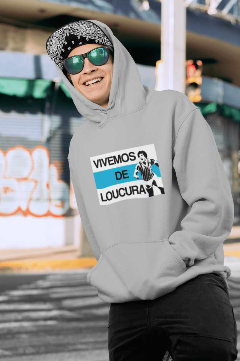 Dê a ti mesmo ou a um amigo gremista a oportunidade de vestir a paixão que une a nação. O canguru "Vivemos de Loucura" é um presente que vai direto ao coração do verdadeiro torcedor.