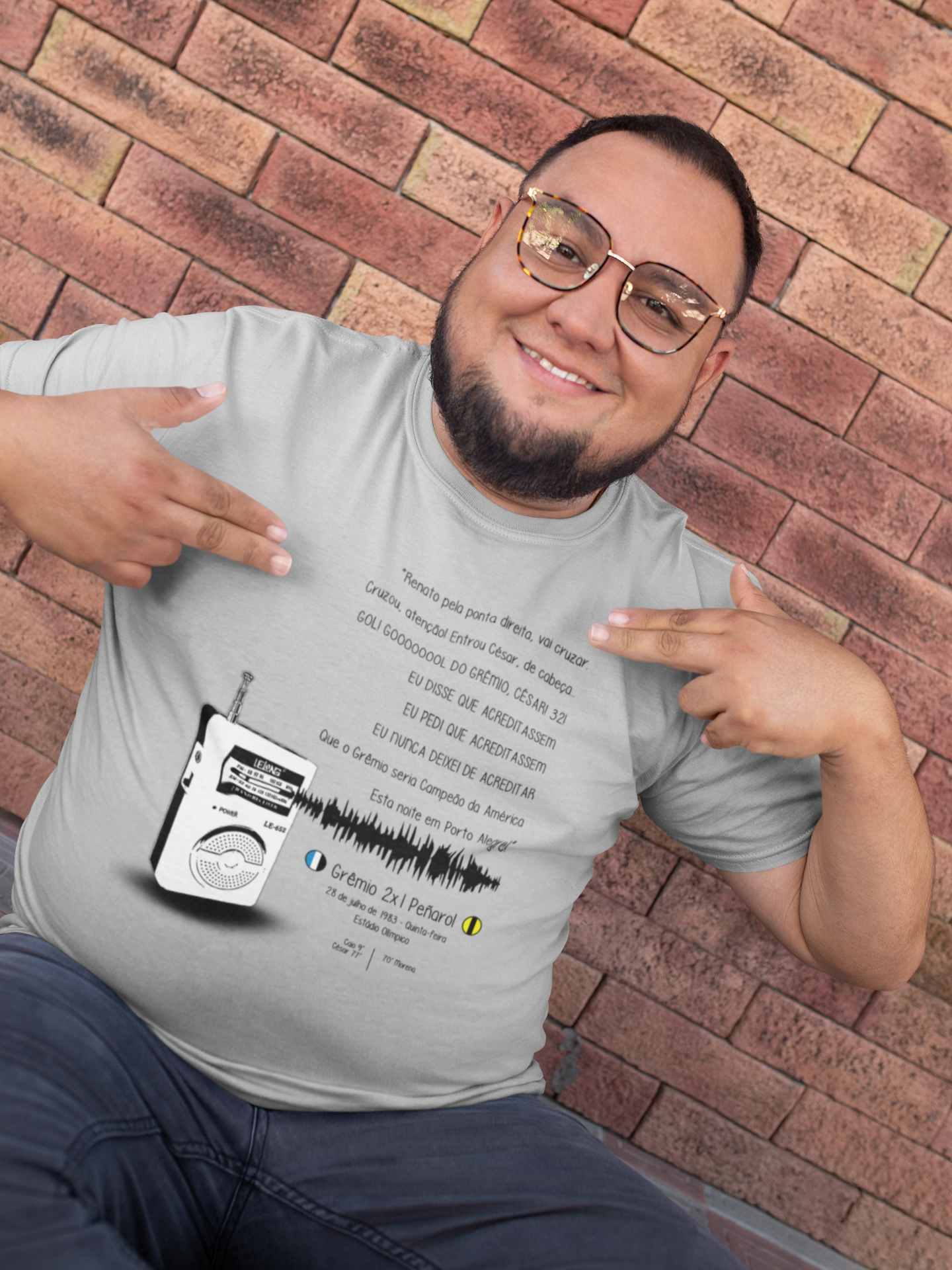 Com a estampa da inesquecível narração de Armindo Antônio Ranzolim, esse modelo exclusivo carrega consigo o eco da vitória que consagrou o Grêmio na Libertadores de 1983. Cada linha, cada curva da camiseta é um tributo ao momento épico que fez o coração tricolor pulsar mais forte.