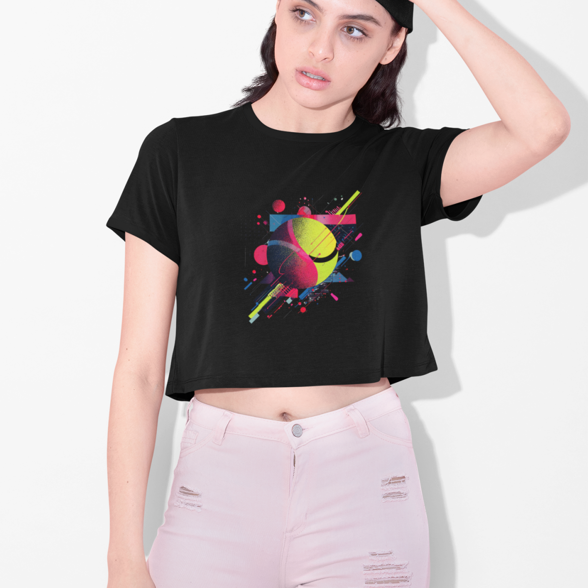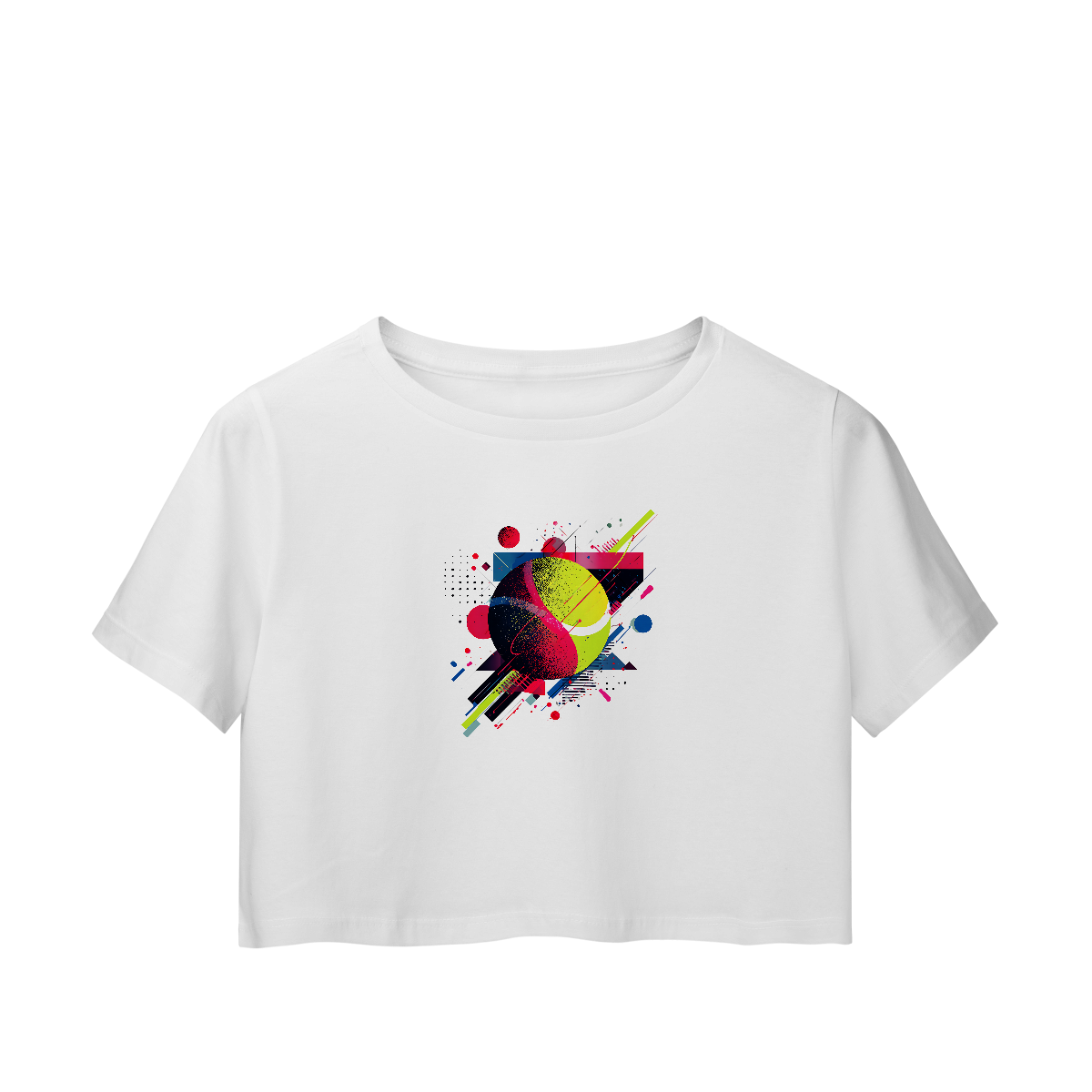 Se prepare para arrasar com o Cropped “Neon Game”, uma peça que traduz sua paixão pelo esporte em um visual moderno, vibrante e cheio de atitude. Inspirada no movimento e na energia das quadras, a estampa mistura cores neon e formas geométricas, trazendo um toque urbano e futurista para o seu look.