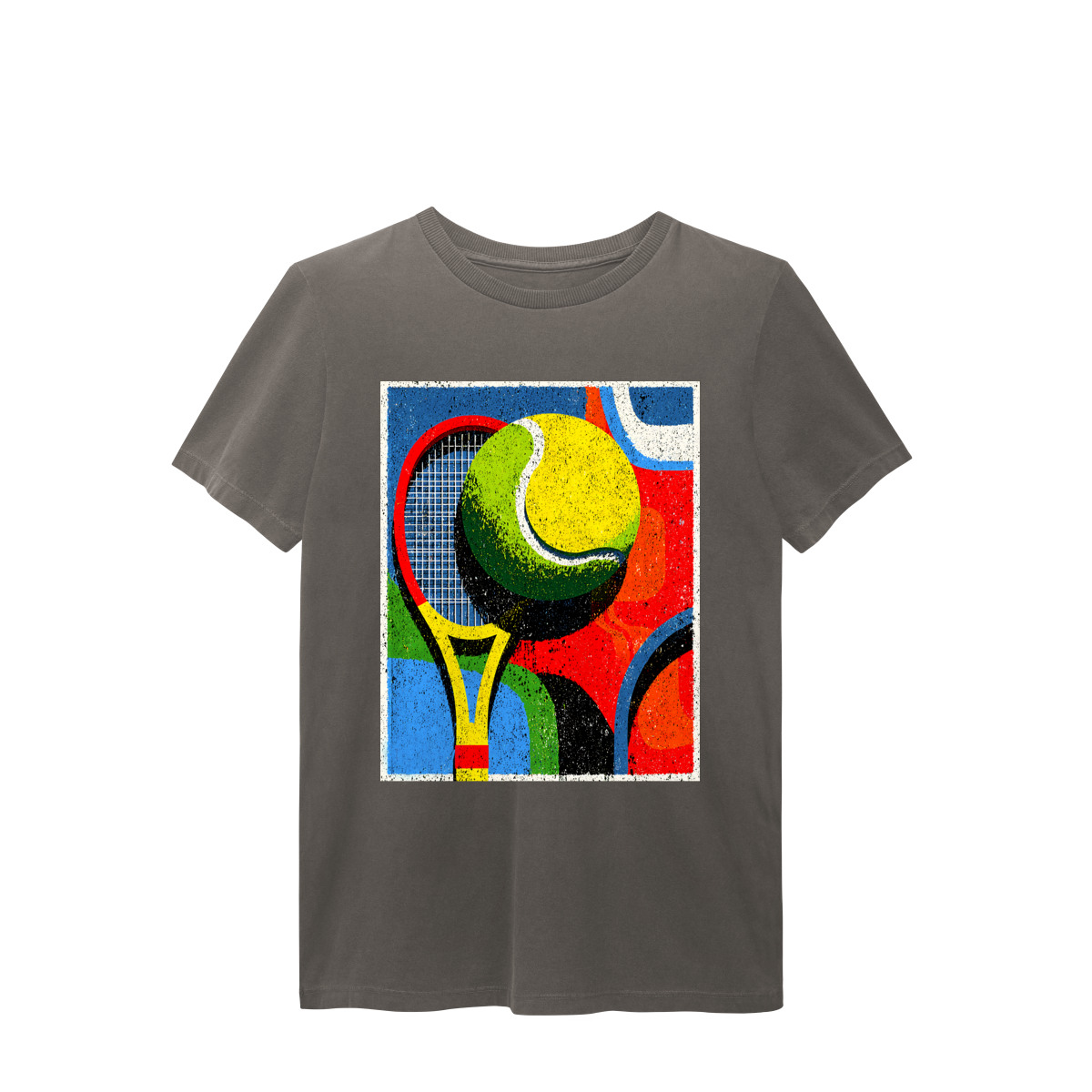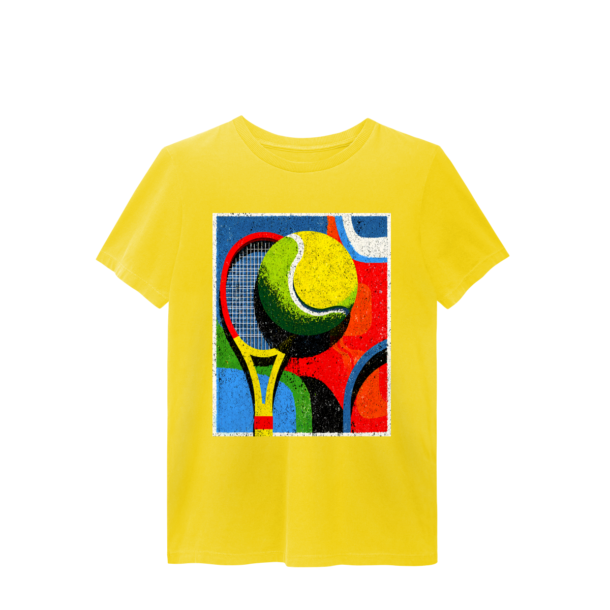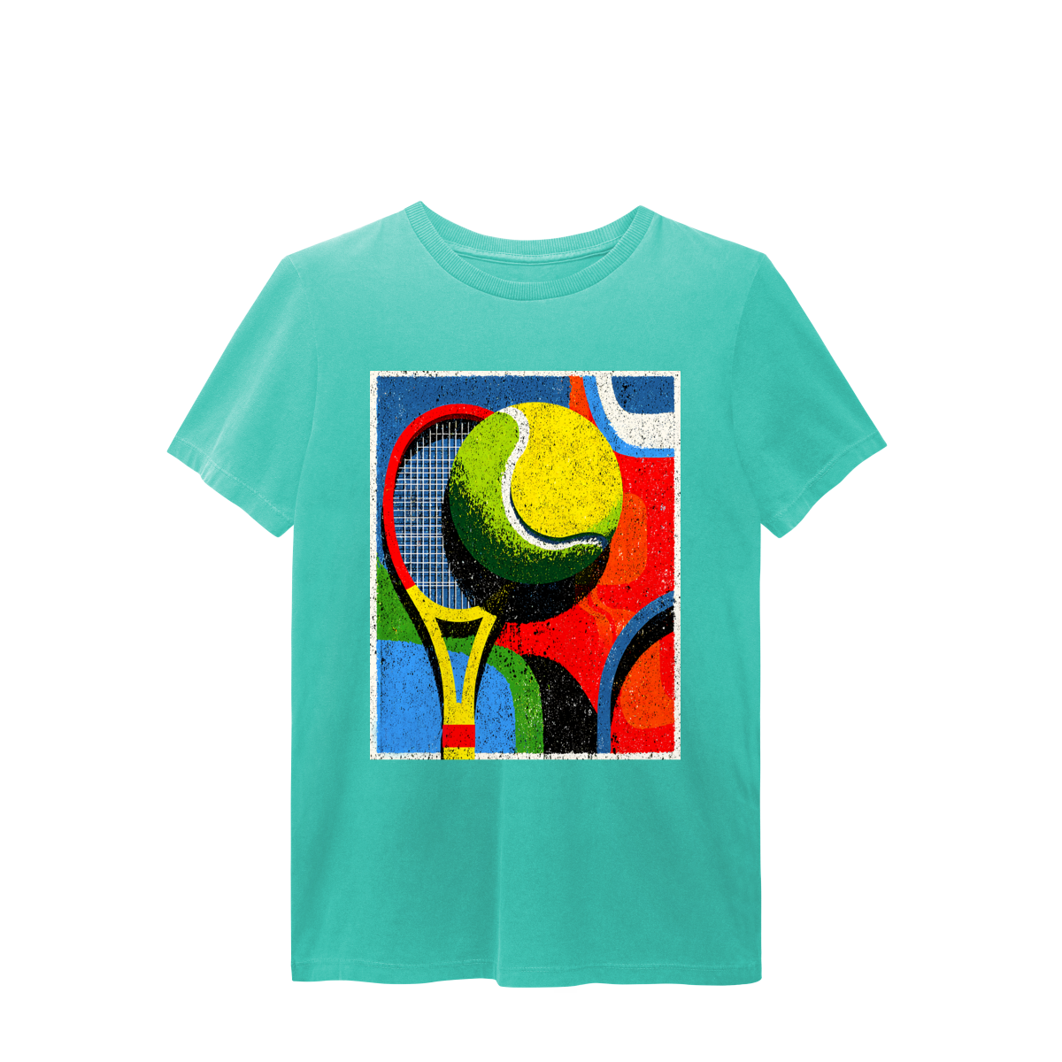 A T-Shirt Estonada Abstrata de Tênis é a escolha perfeita para quem busca estilo, conforto e autenticidade. Sua estampa exclusiva traz uma composição moderna com raquete e bola de tênis em formas geométricas e cores vibrantes, transmitindo energia, movimento e personalidade em cada detalhe.