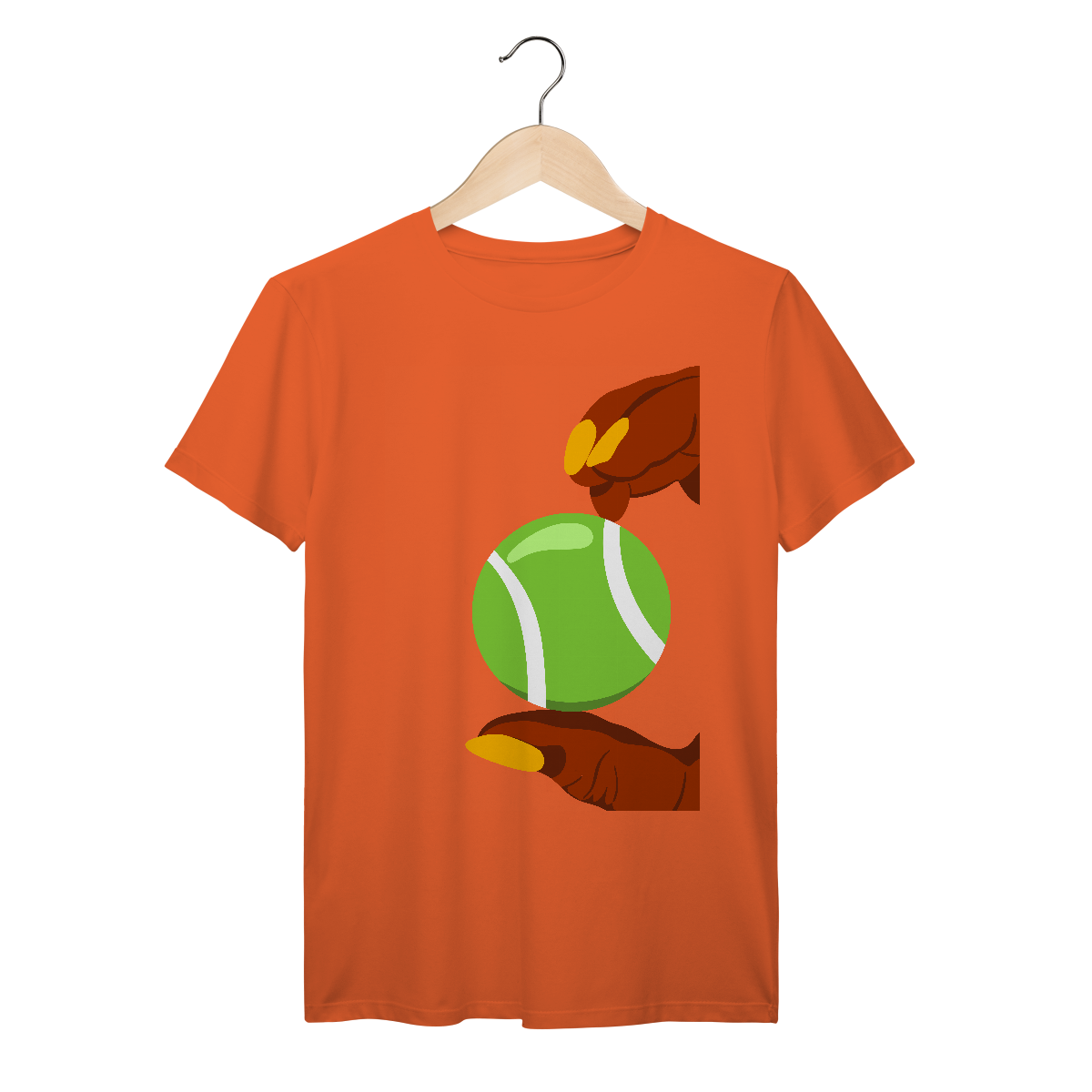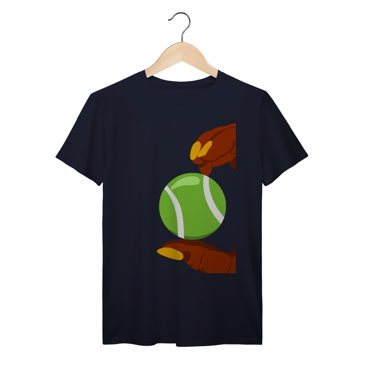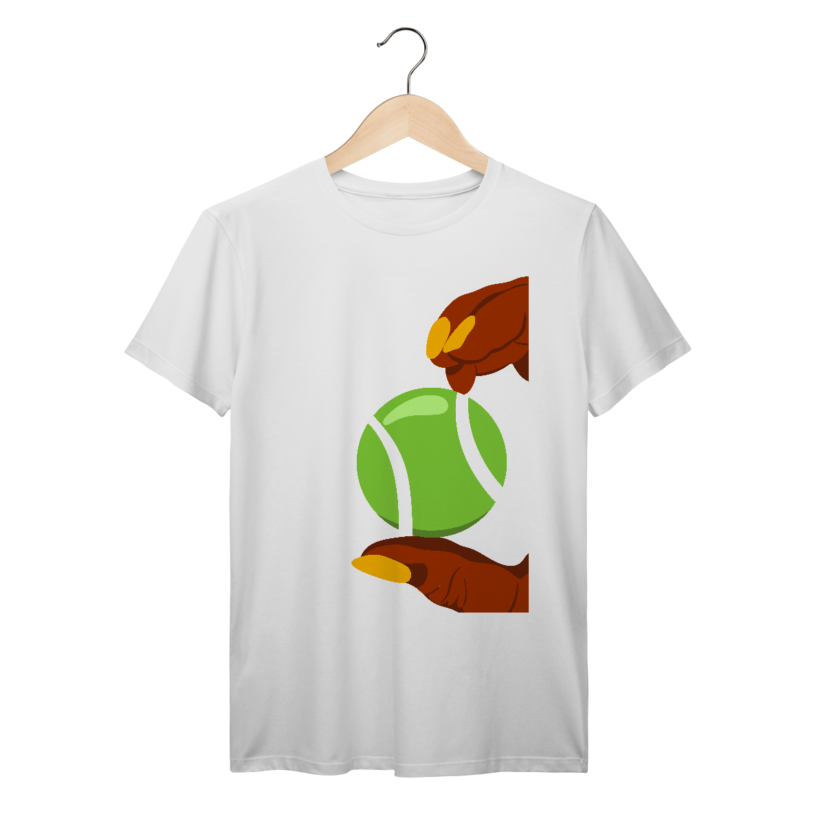 A estampa divertida dos dedos segurando uma bola de tênis traz personalidade e estilo para quem ama o esporte, unindo moda e conforto em uma camiseta única.