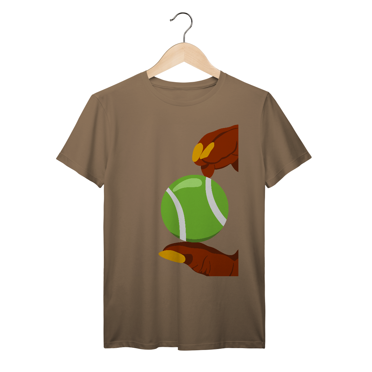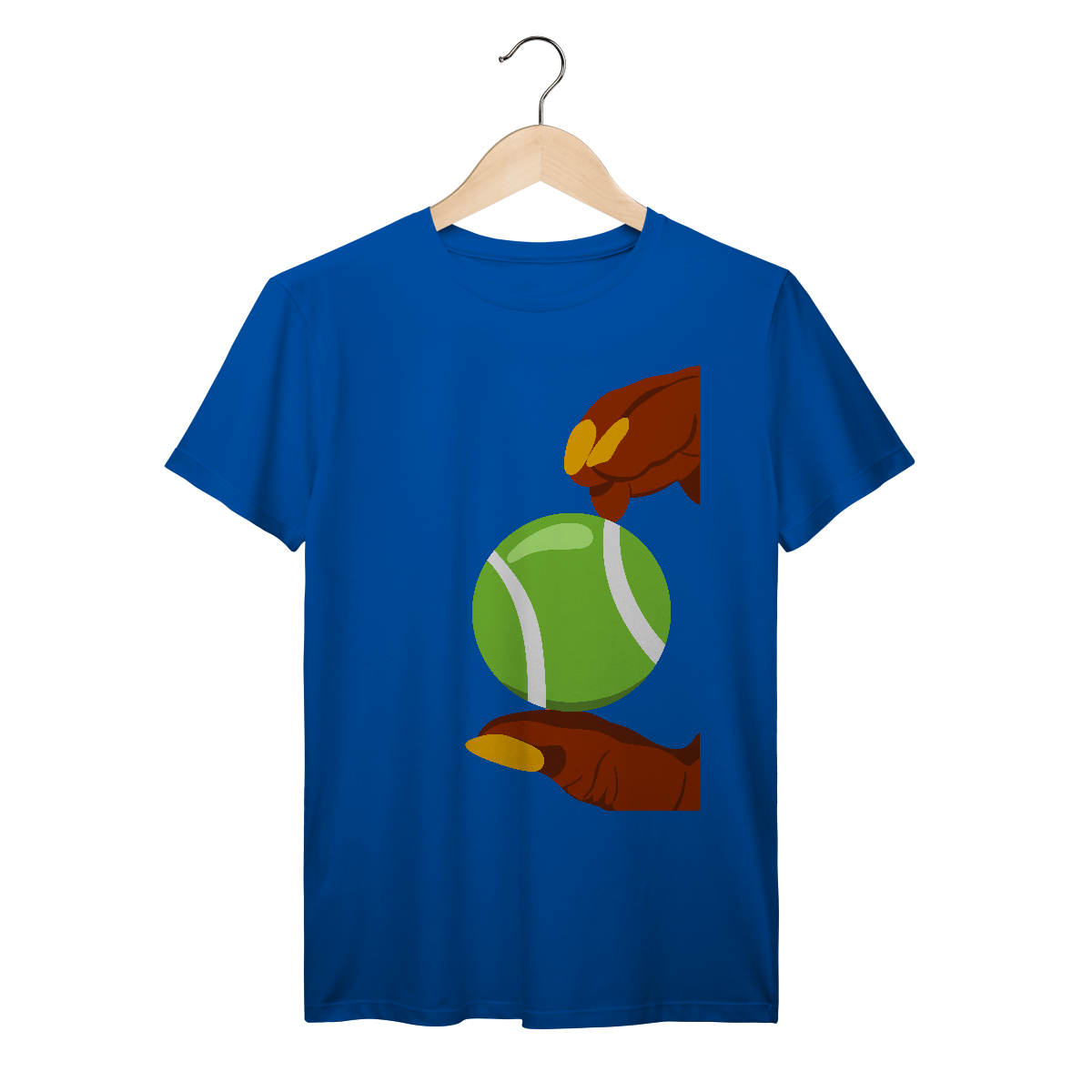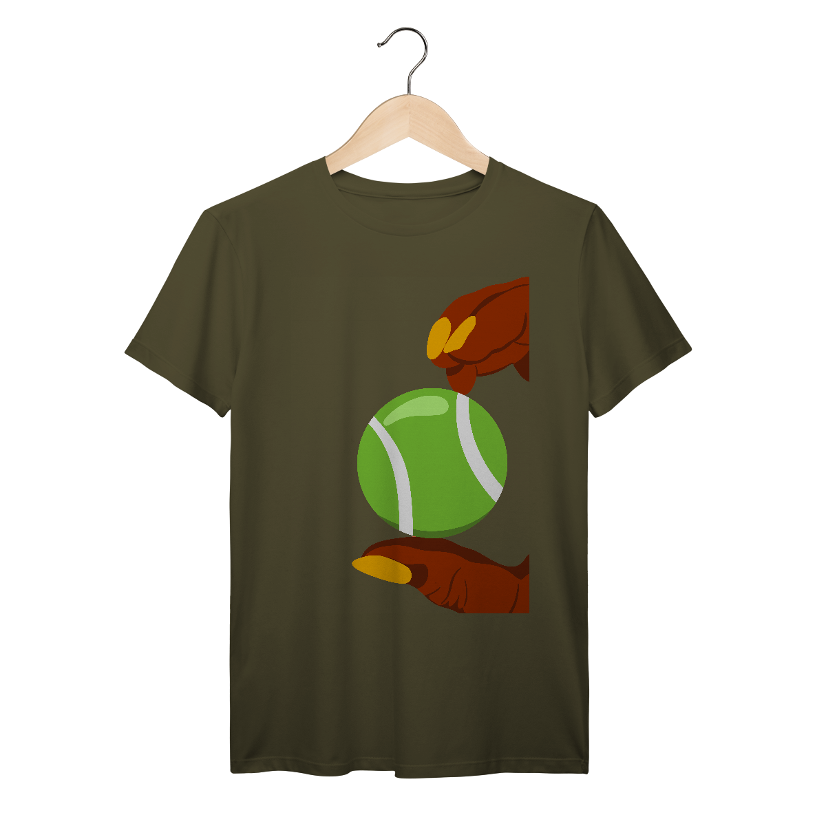 A estampa divertida dos dedos segurando uma bola de tênis traz personalidade e estilo para quem ama o esporte, unindo moda e conforto em uma camiseta única.