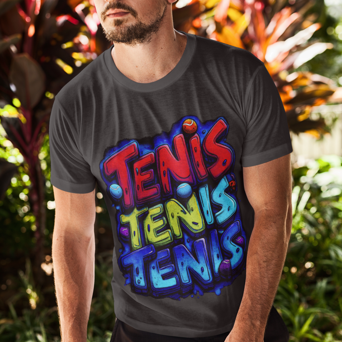A estampa exclusiva em Silk Digital HD traz um design vibrante e moderno, inspirado no universo do tênis, com cores vivas que se destacam sem perder a elegância.