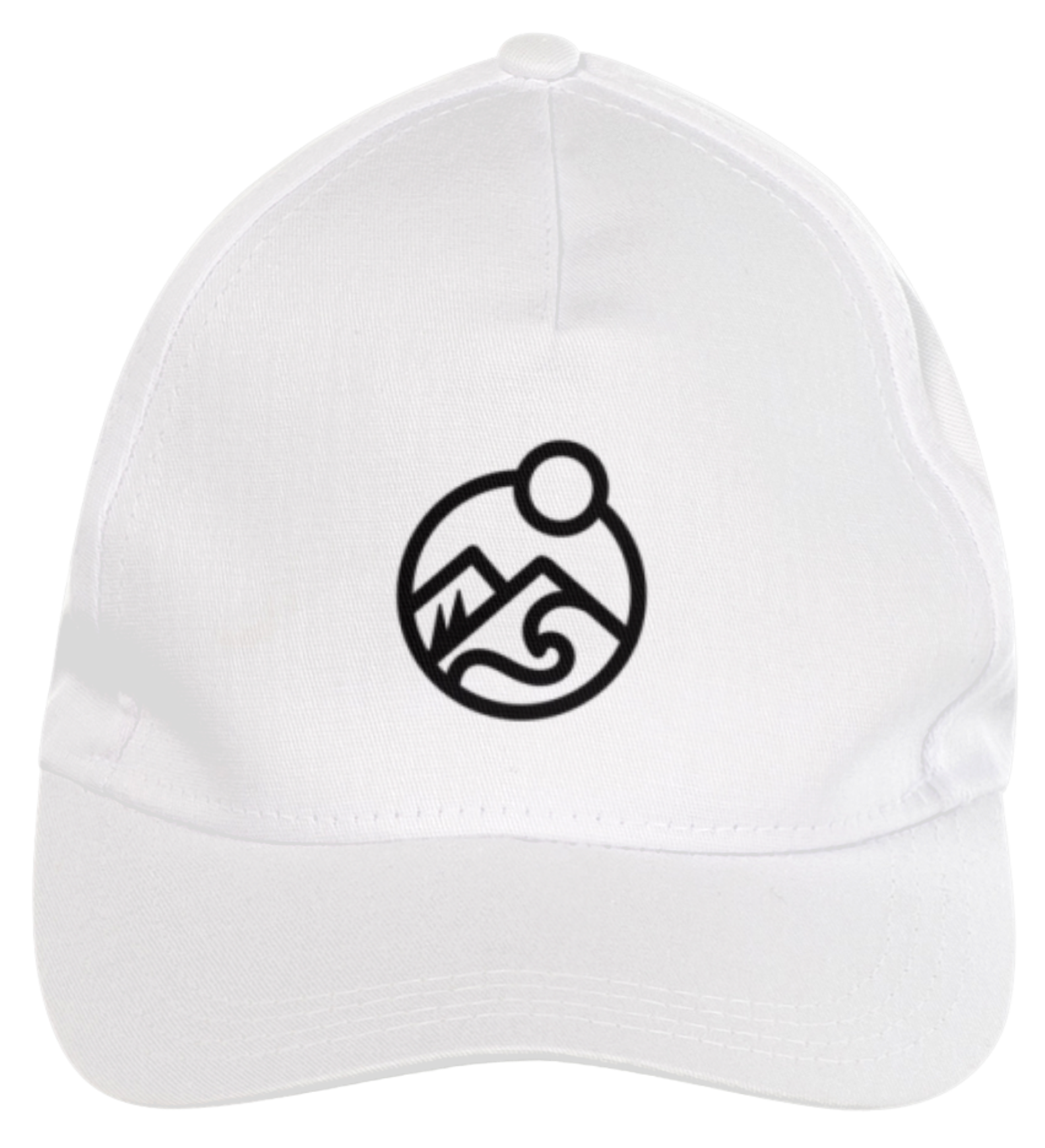 Boné americano com transfer frontal em alta qualidade, aba curva e fecho em tira totalmente regulável com pinos. O modelo veste tamanho "único".