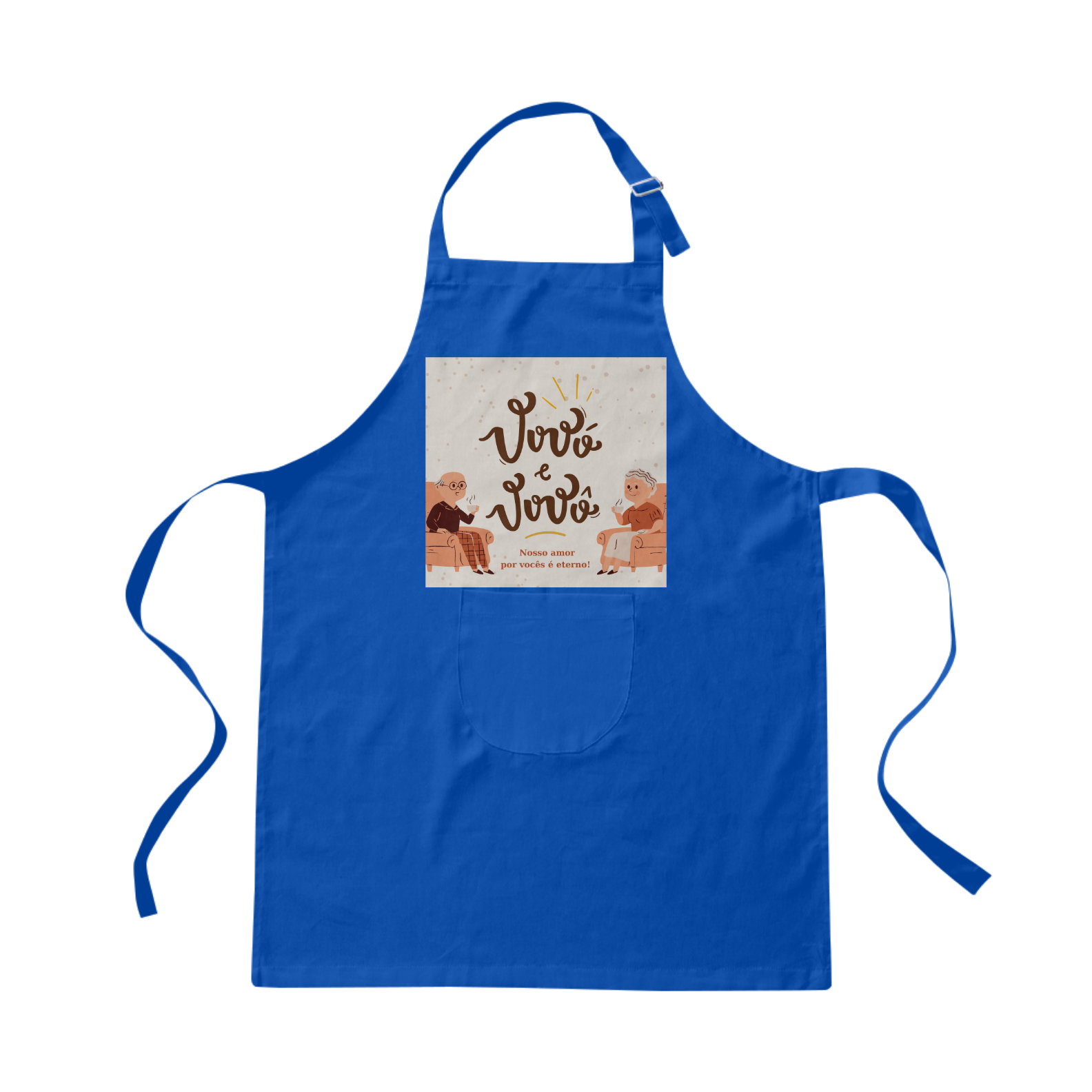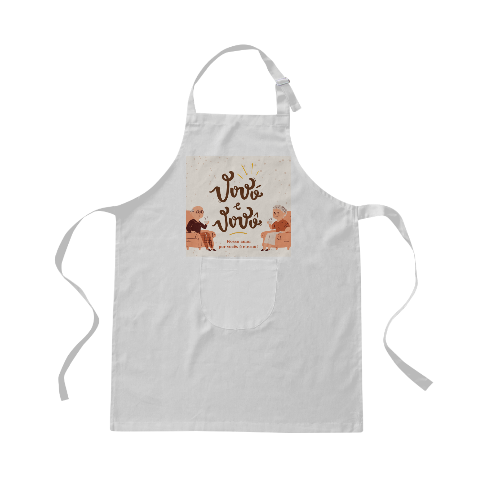 Composição: 100% algodão, tecido com alta resistência, alça regulável e faixa para amarração nas costas.