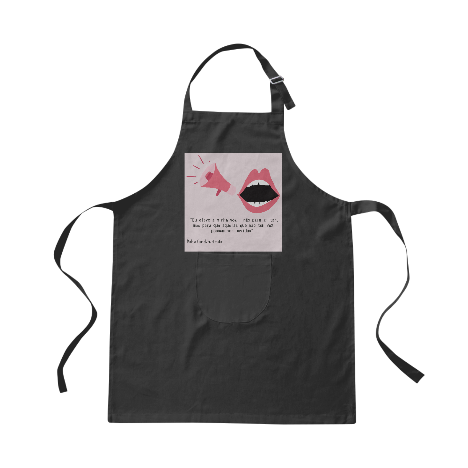 Composição: 100% algodão, tecido com alta resistência, alça regulável e faixa para amarração nas costas.