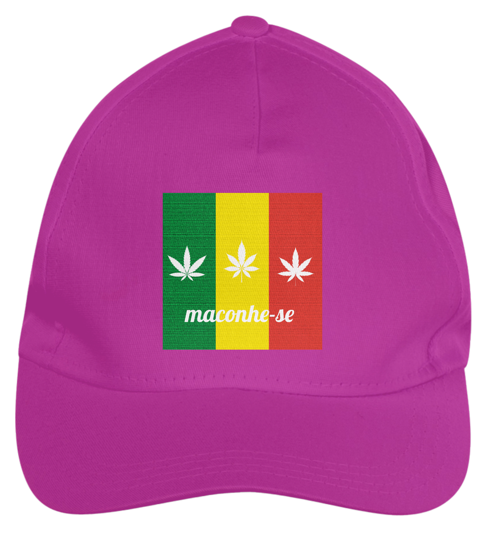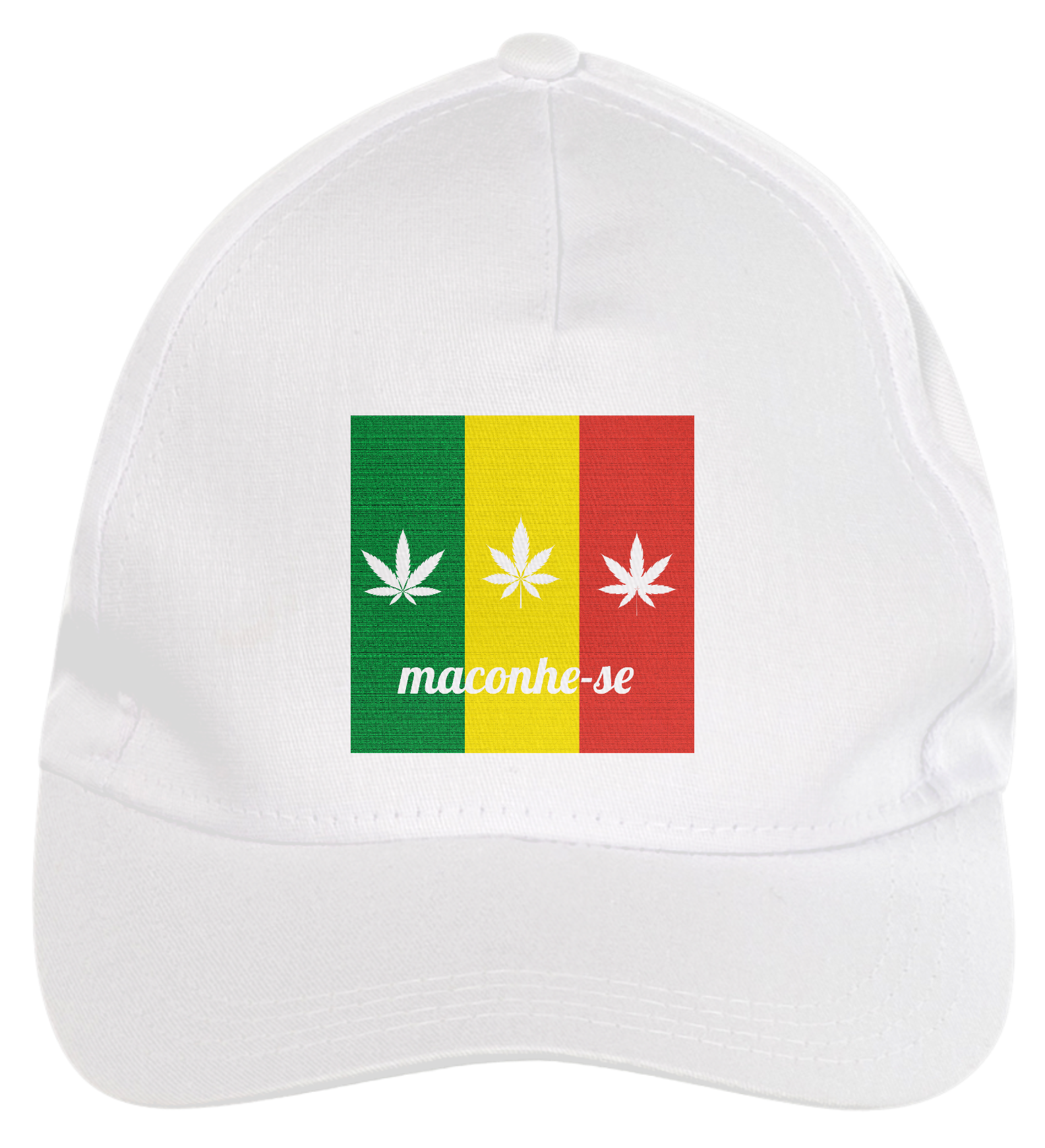 Boné americano com transfer frontal em alta qualidade, aba curva e fecho em tira totalmente regulável com pinos. O modelo veste tamanho "único".