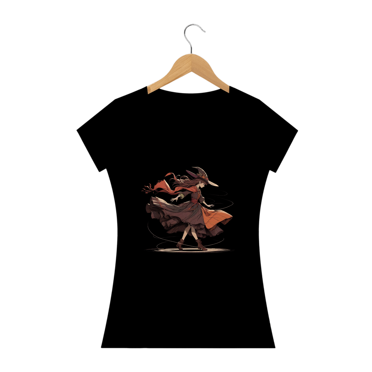 "Desperte sua magia interior com nossa encantadora camiseta estampada de bruxa bailarina! Esta peça única combina o mistério das bruxas com a graça da dança, criando um visual cativante e cheio de personalidade. Perfeita para os amantes do oculto e da arte da dança, esta camiseta adiciona um toque de magia e elegância ao seu estilo. Dance com as estrelas e deixe sua bruxaria brilhar com nossa estampa de bruxa bailarina!"
