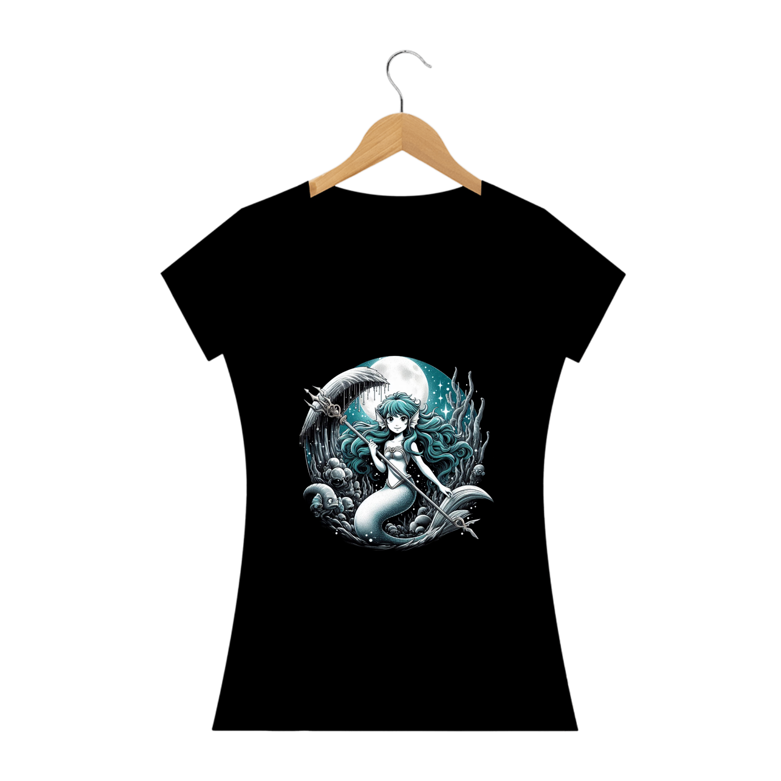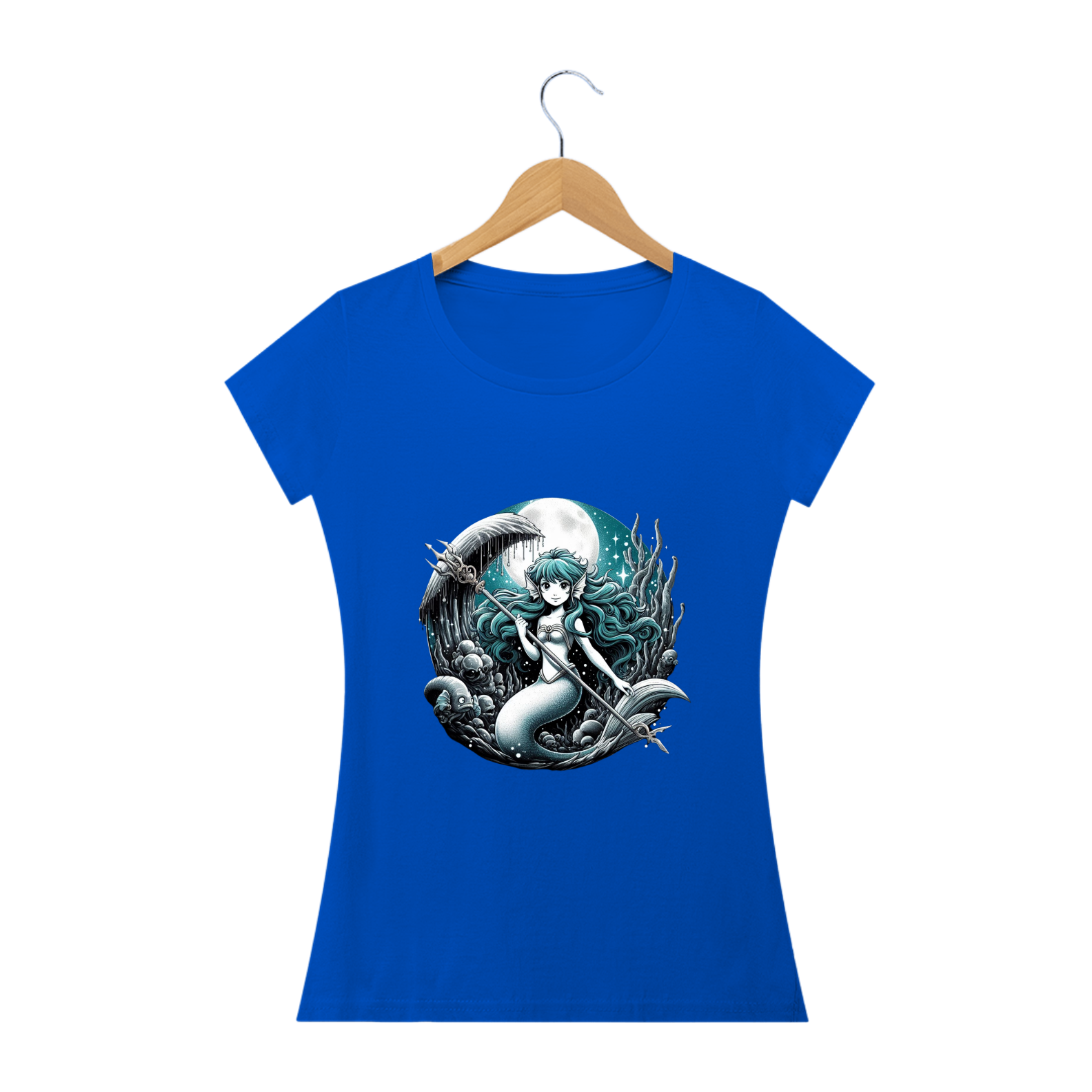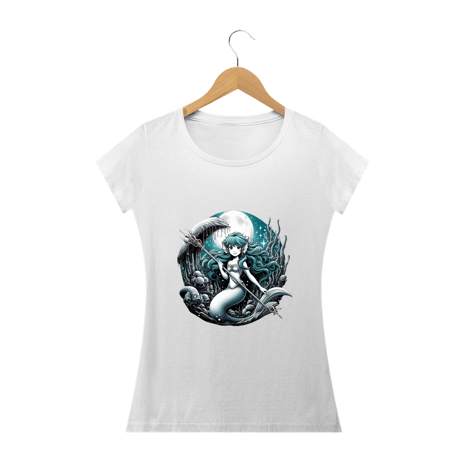 "Faça uma declaração de estilo com nossa deslumbrante camiseta estampada de sereia! Transporte-se para o mundo mágico do mar com esta estampa encantadora, que combina o mistério das profundezas com a beleza lendária das sereias. Perfeita para os sonhadores e amantes da fantasia, esta camiseta é uma escolha elegante e única para adicionar um toque de magia ao seu visual. Deixe sua imaginação mergulhar nas ondas com nossa estampa de sereia e faça um splash de estilo onde quer que vá!"
