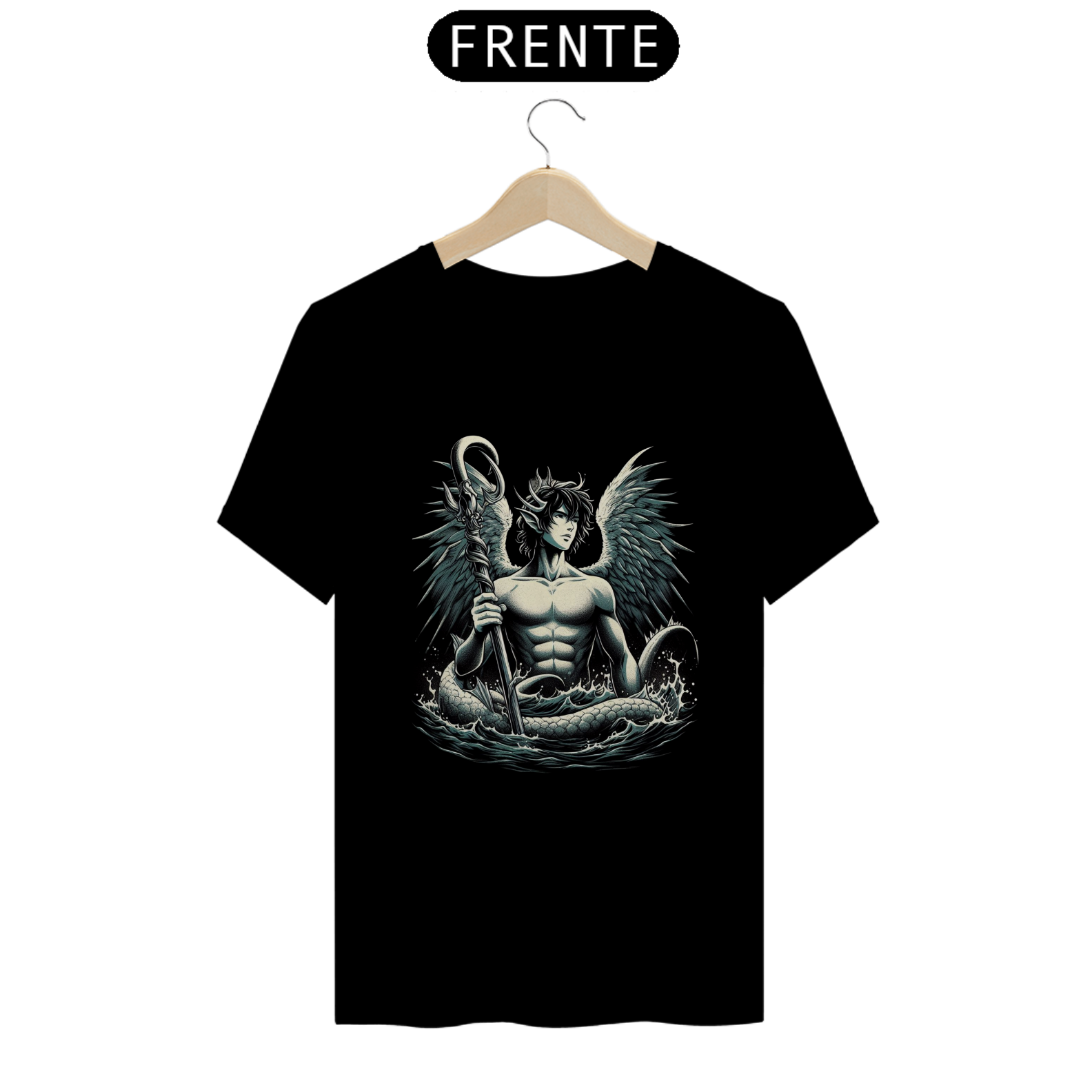 "Faça uma declaração audaciosa com nossa camiseta estampada de Tritão! Esta peça única captura a majestade e o poder do lendário rei dos mares, adicionando um toque de mistério e aventura ao seu estilo. Perfeita para os amantes da mitologia e da fantasia, esta camiseta é uma escolha ousada que vai deixar você se destacar da multidão. Afirme sua conexão com o oceano e mergulhe na grandiosidade com nossa estampa de Tritão!"