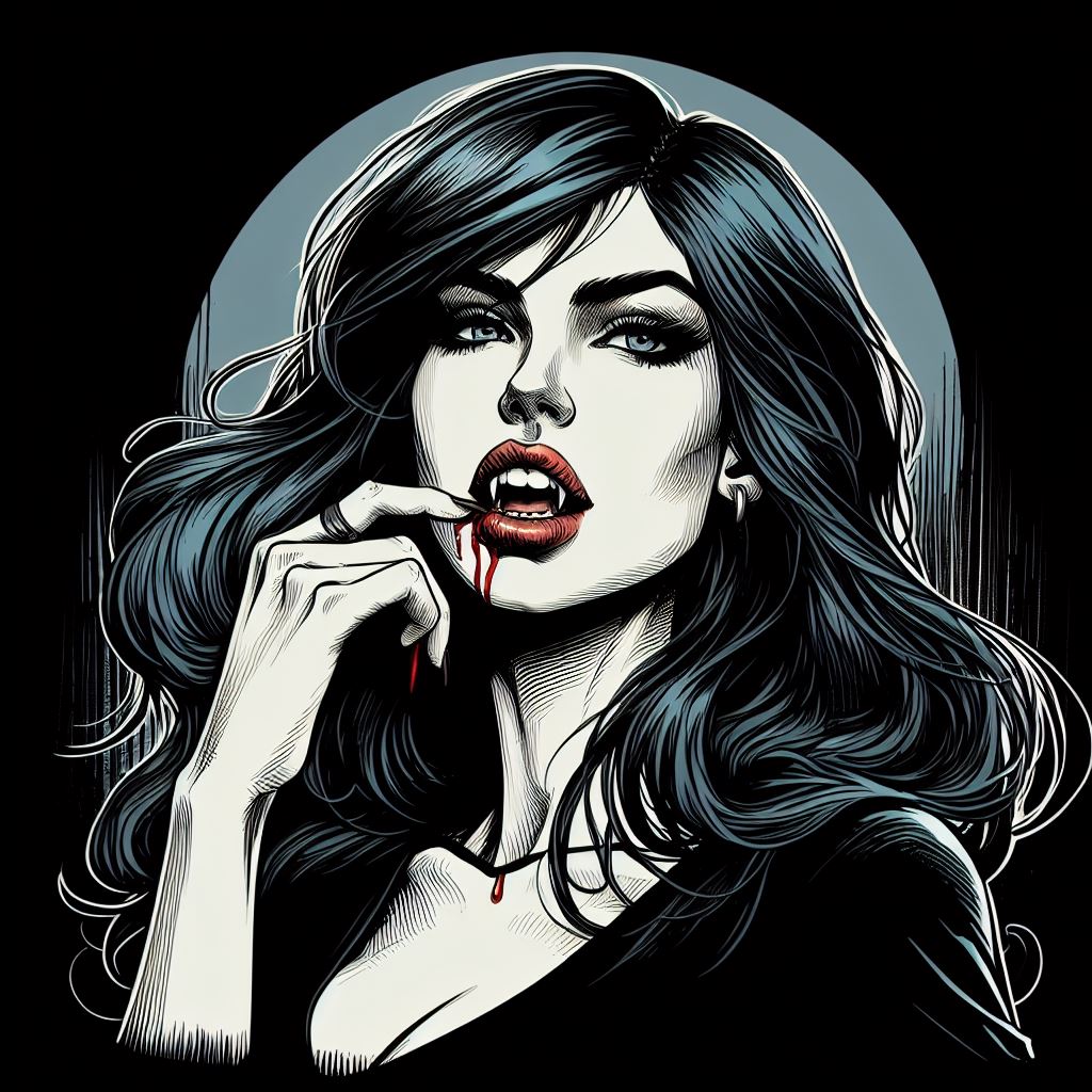 Abraçando a escuridão com estilo, nossa camiseta estampada de Vampira Gótica é uma declaração de moda sombria e elegante. Com sua estampa hipnotizante, esta peça celebra o fascínio eterno pelos vampiros e o encanto da estética gótica. Perfeita para quem ousa desafiar o convencional e abraçar sua natureza mais sombria, esta camiseta é um convite para mergulhar nos mistérios da noite. Vista-se com nossa estampa de Vampira Gótica e deixe sua alma gótica brilhar com orgulho!