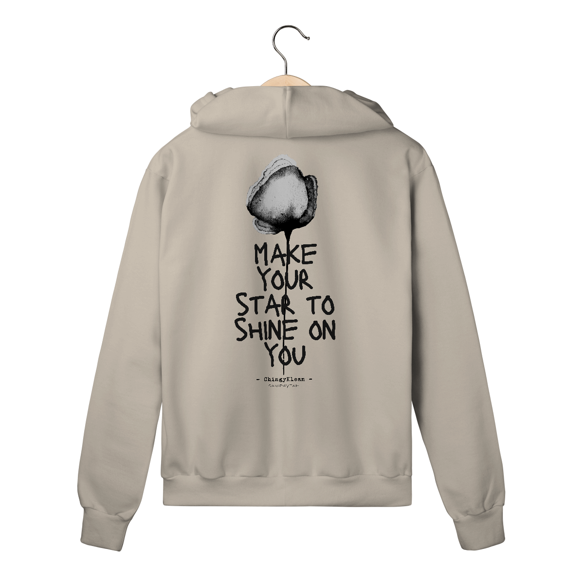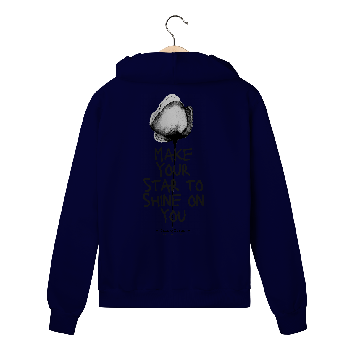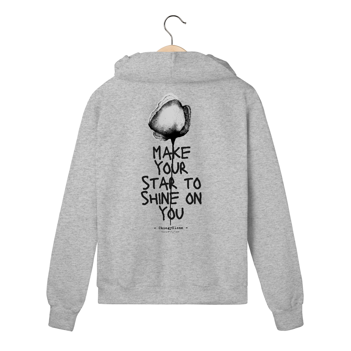 Frase da música do cantor e compositor nigeriano, ChingyKlean, estampada em moleton Prime de alta qualidade com zíper frontal - um convite a acender sua própria luz e deixar ela brilhar sobre você
