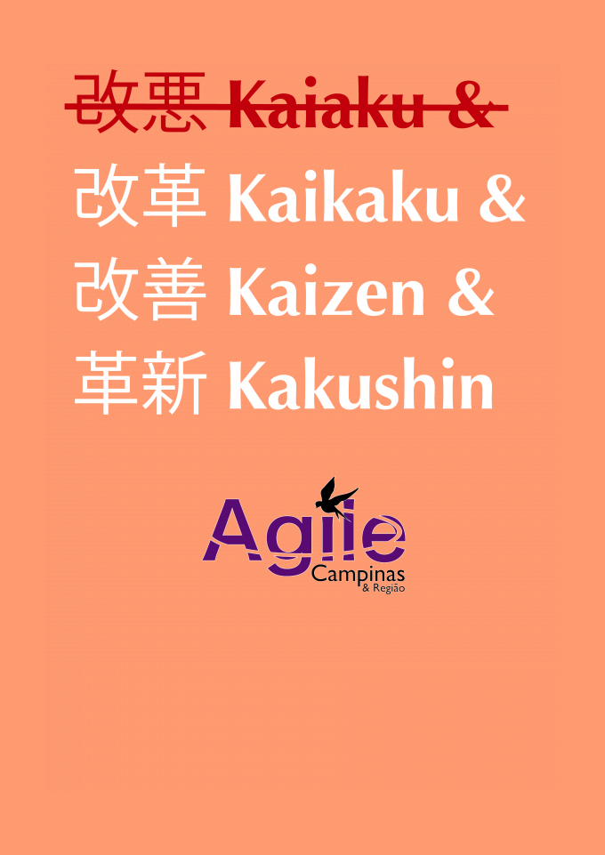 Agile, Ágil, Agilidade, Scrum, Kanban, Kaiaku, Kaikaku, Kaizen, Kakushin