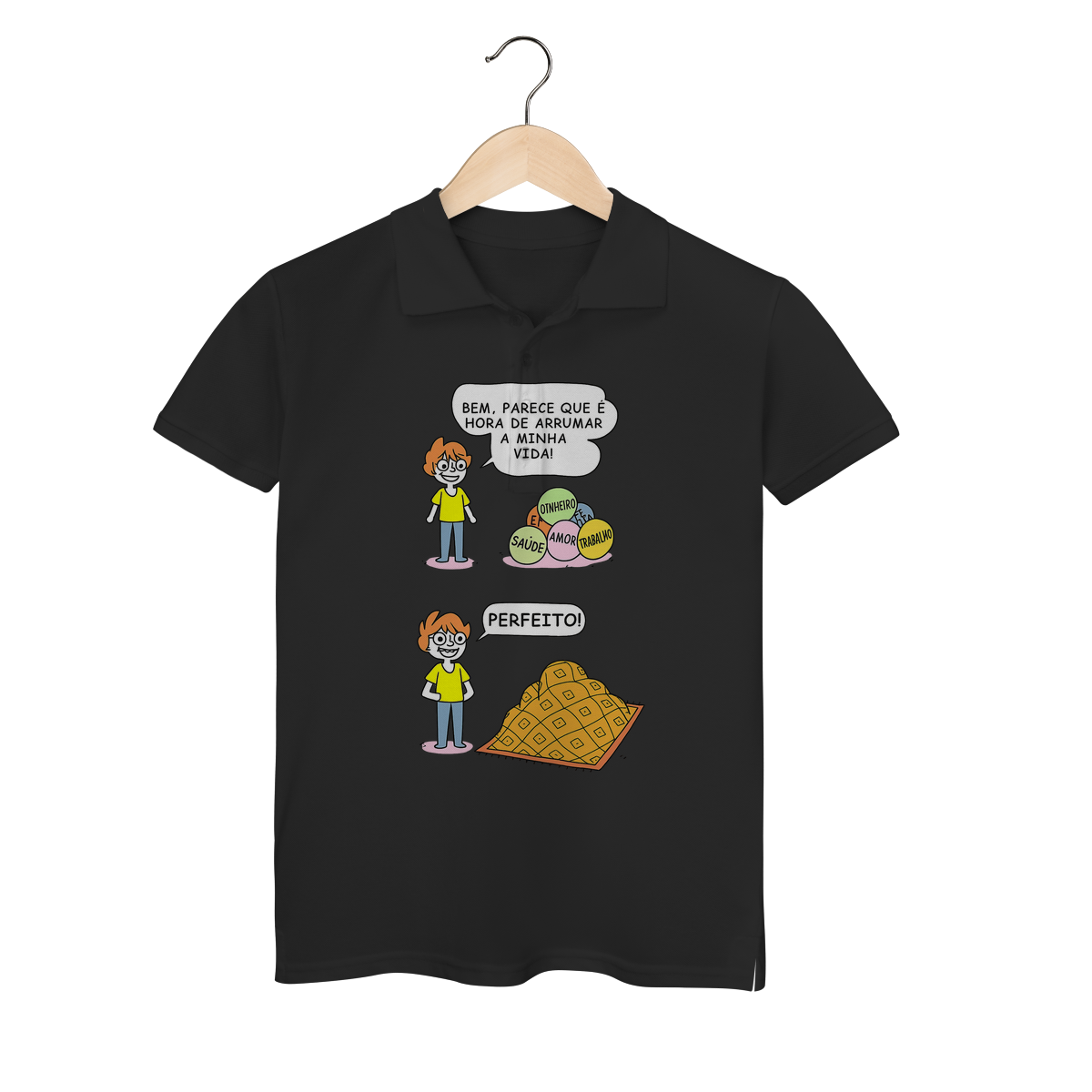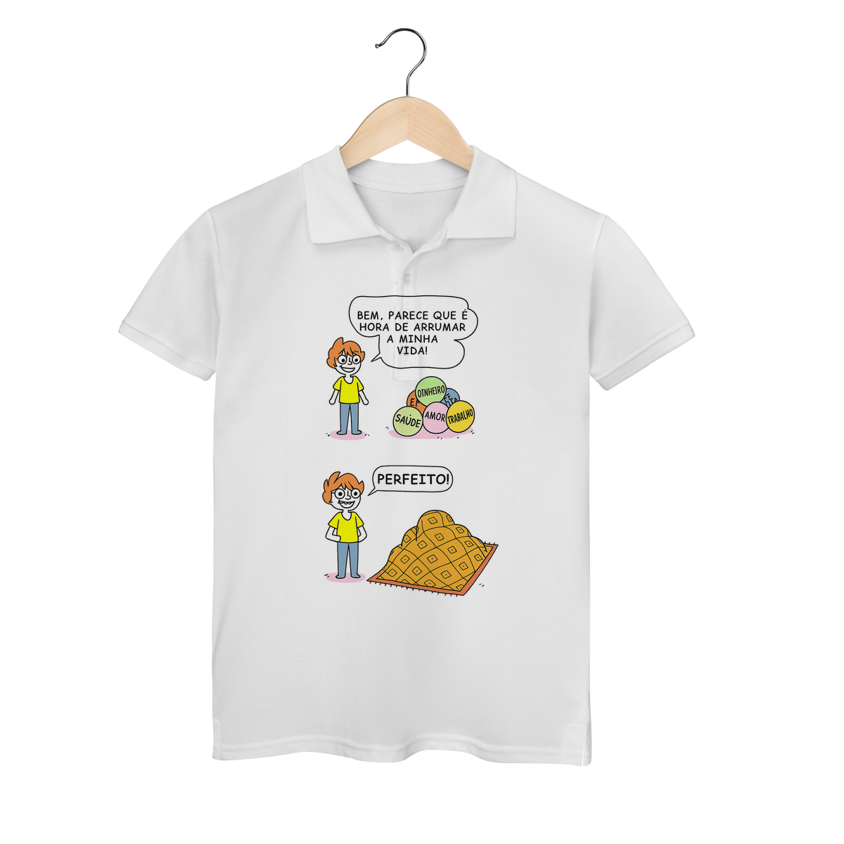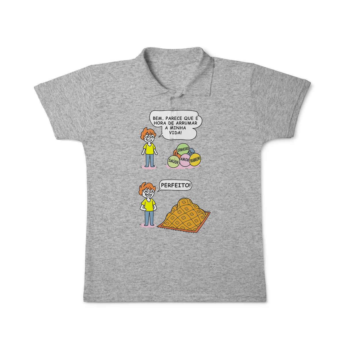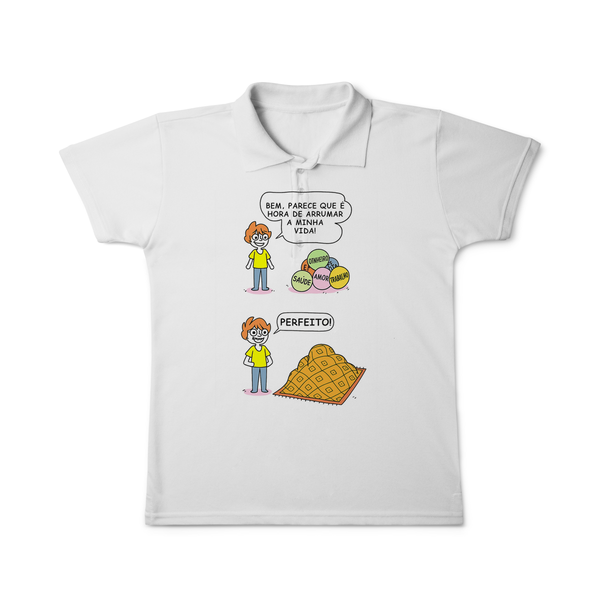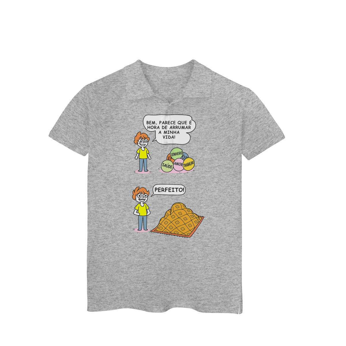Cores do produto: Como cada tela de computador ou celular tem seu próprio jeito de mostrar cores, então a cor da sua camiseta e da estampa pode ser um pouco diferente do que você viu online.