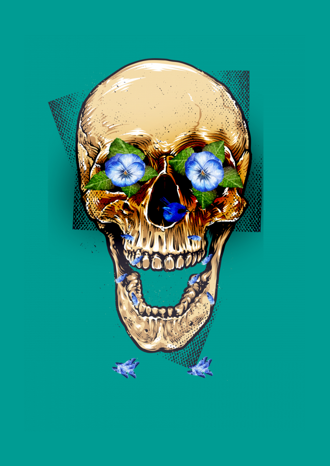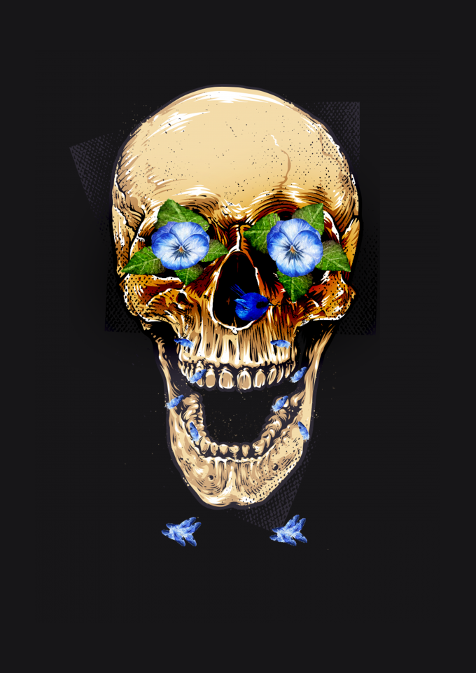 camisa caveira,skull,flores,primavera,verão,pássaros,