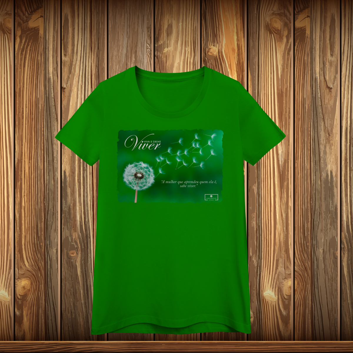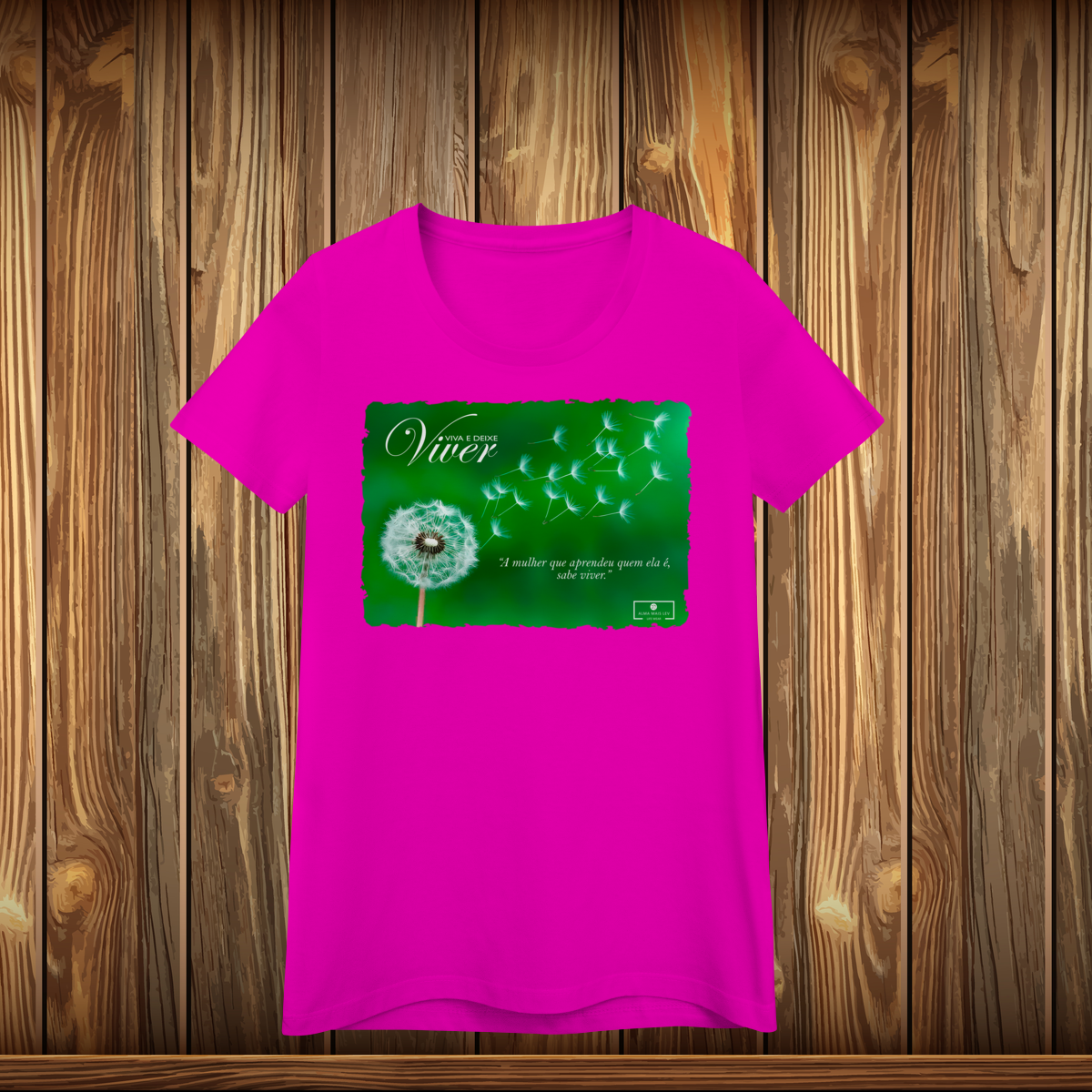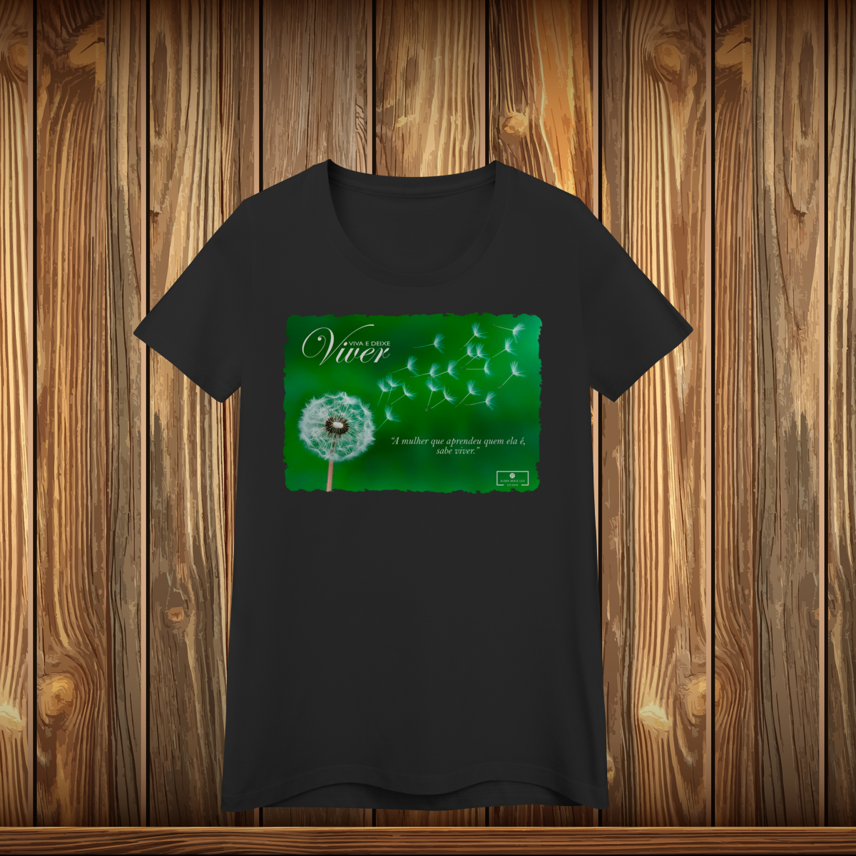 No peito, a camiseta traz a logomarca da “Viva e Deixe Viver”, aplicada de forma limpa e sofisticada, simbolizando leveza, autenticidade e liberdade pessoal.