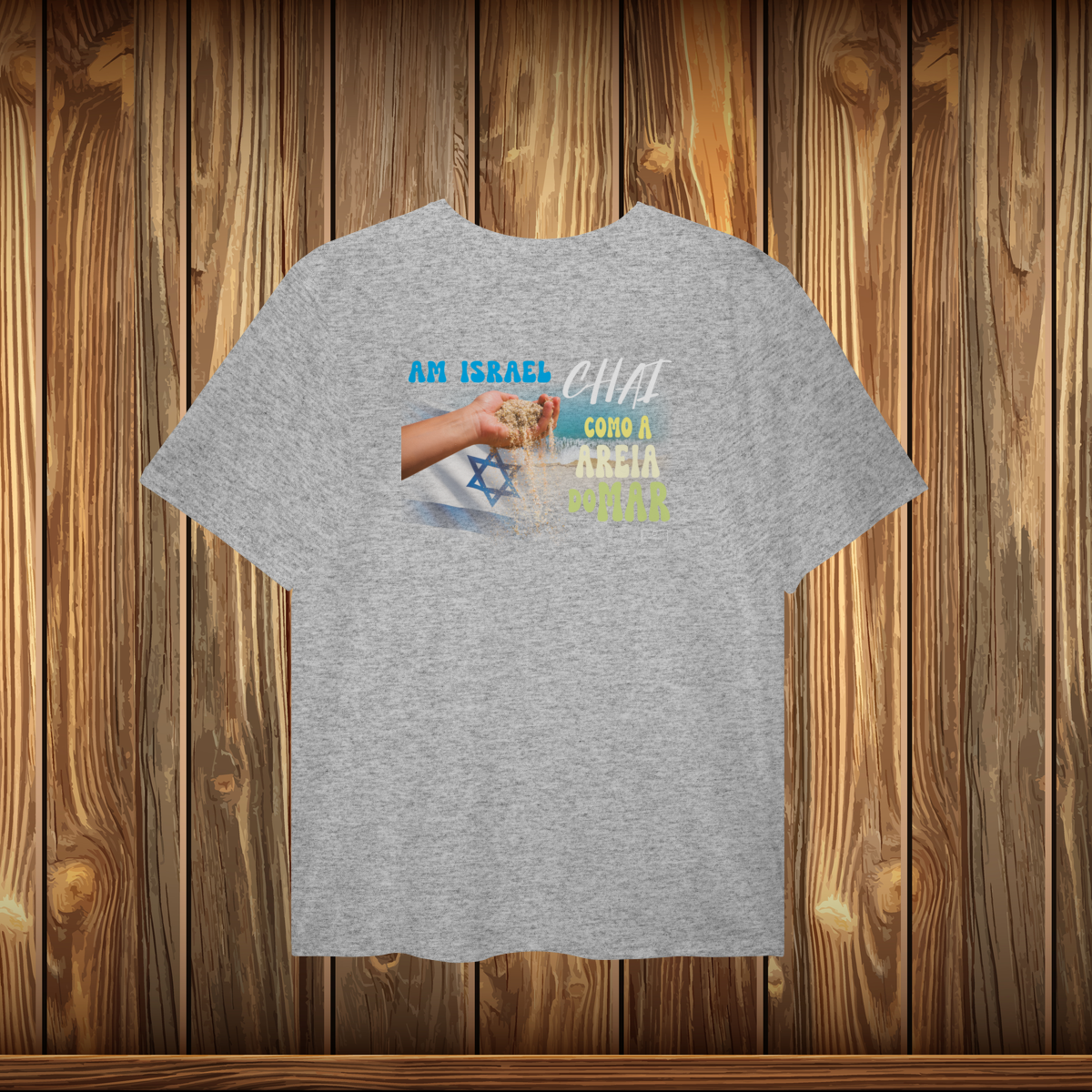 Esta camisa de alta qualidade integra a coleção “Sabedoria Judaica” e carrega uma mensagem profunda e eterna: “O povo de Israel Vive — como a areia do mar.” Inspirada na tradição e na resiliência do povo judeu, esta frase simboliza continuidade, força, fé e eternidade. Tal como a areia do mar — incontável e resistente — esta mensagem honra a história, a identidade e a esperança que atravessam gerações.