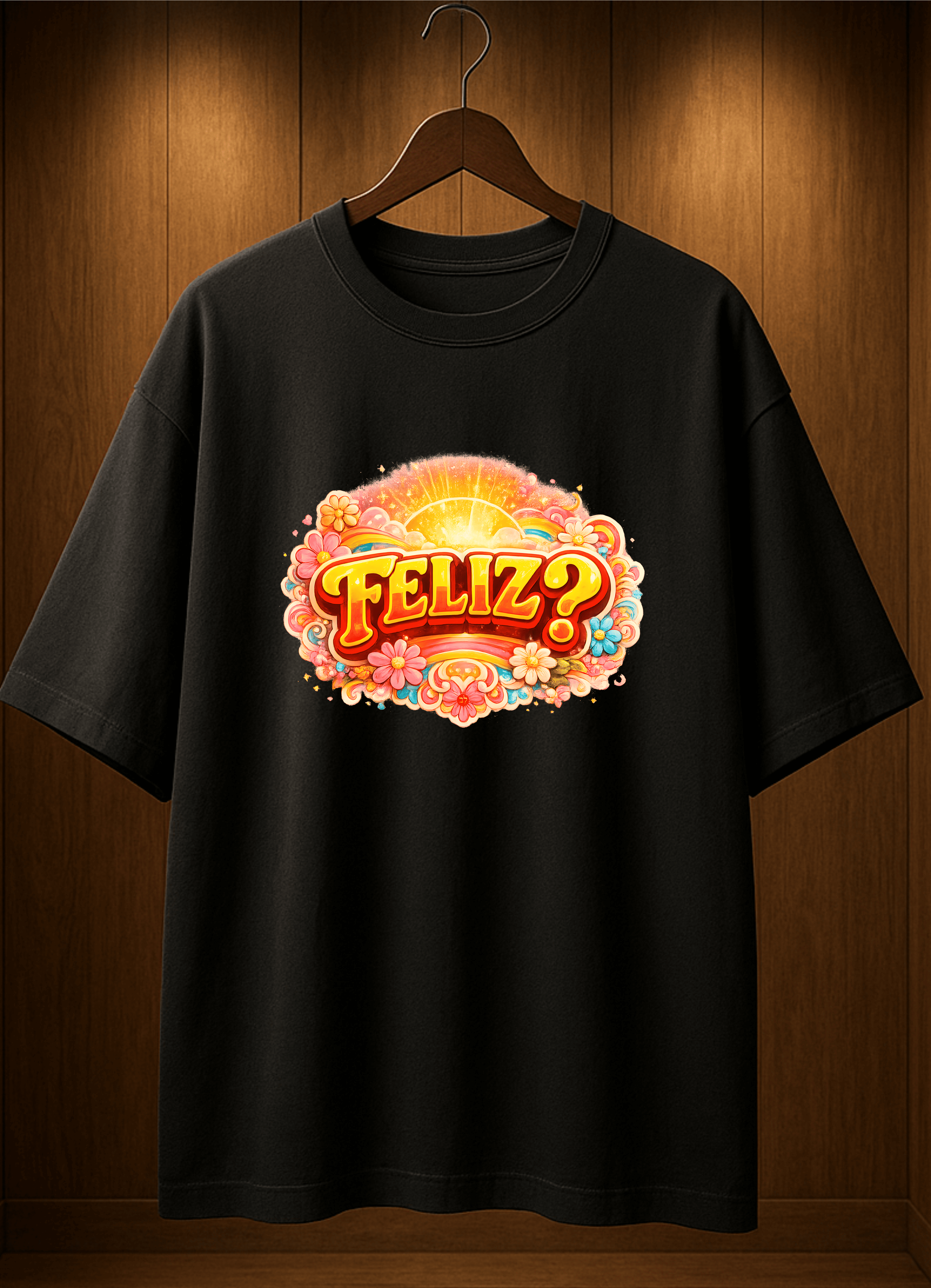 A pergunta “Feliz?” incentiva o hábito consciente da felicidade. Ela recorda que ser feliz não é apenas um destino, mas uma prática diária: agradecer, valorizar as pequenas conquistas, reconhecer o que já temos e escolher, sempre que possível, uma atitude mais positiva perante a vida. Vestir esta mensagem é levar consigo um estímulo constante para cuidar da mente, do coração e da alma.