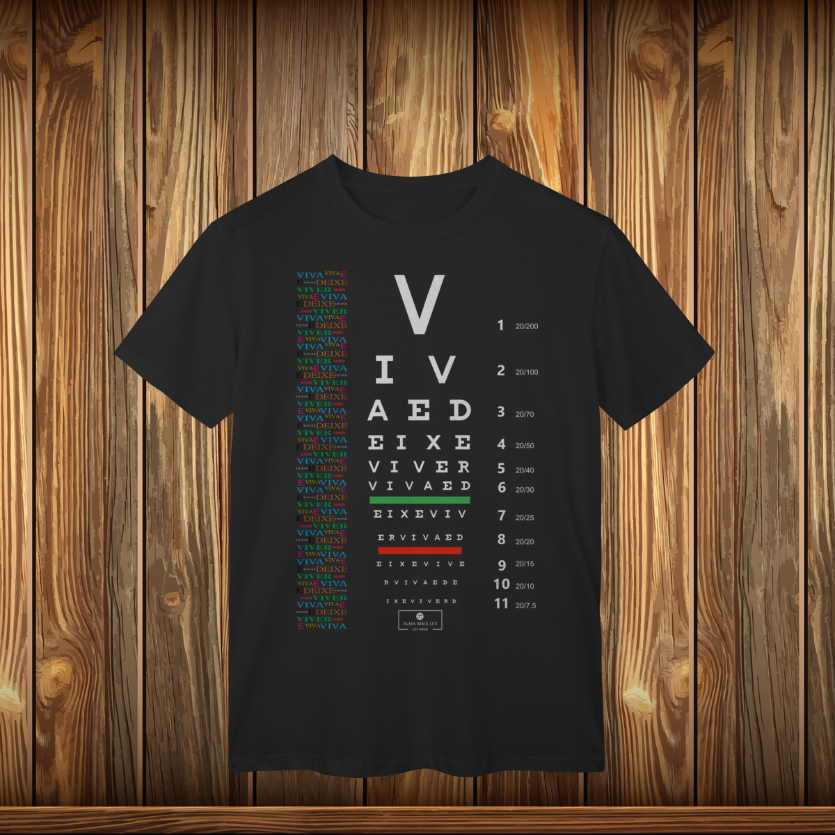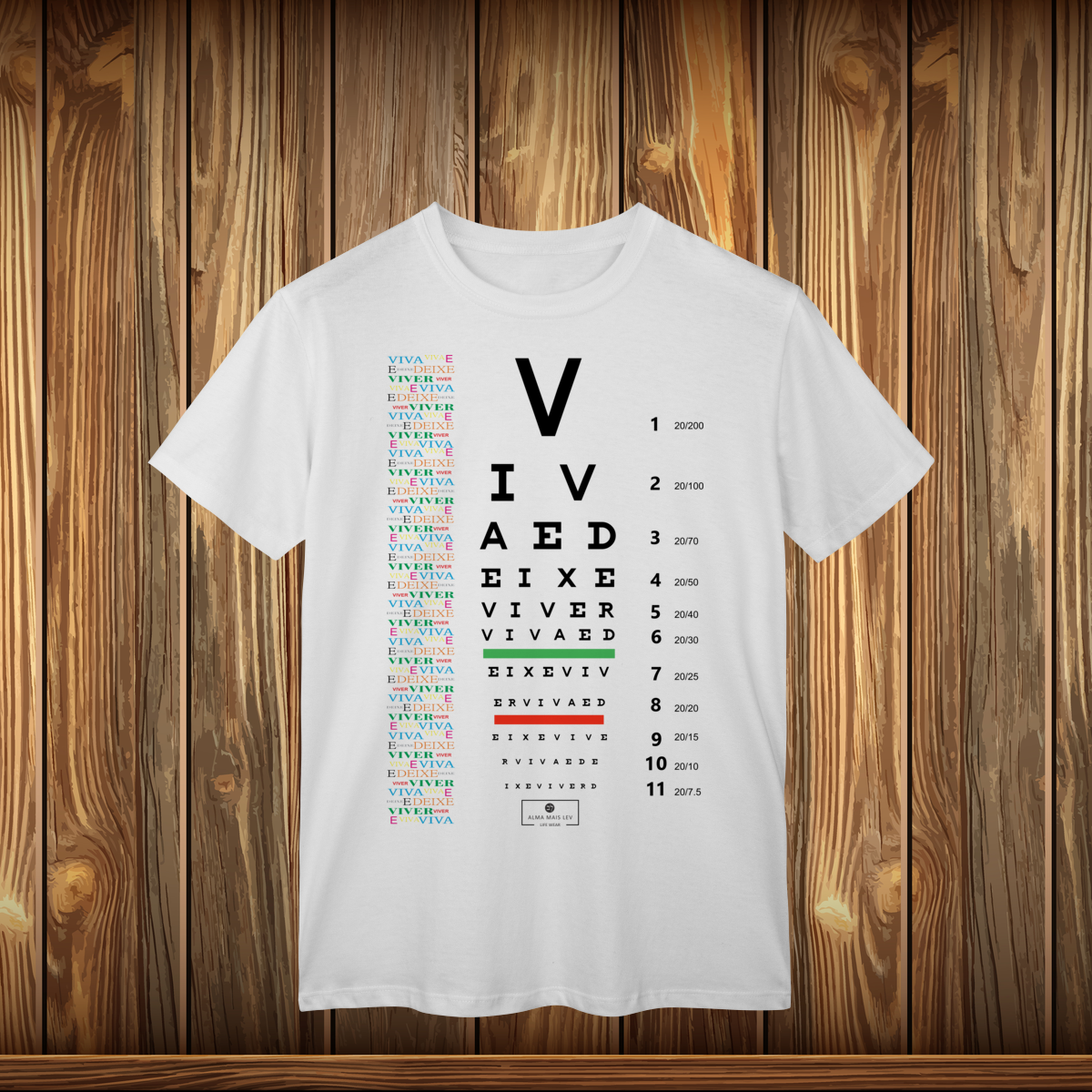 Esta camisa de alta qualidade da coleção "Viva e Deixe Viver" convida à reflexão com o tema “Teste a sua visão”. Mais do que uma frase criativa, é um convite a olhar a vida com mais clareza, consciência e propósito. Uma mensagem que inspira a questionar, a aprender e a ajustar o nosso foco para aquilo que realmente importa no dia a dia.