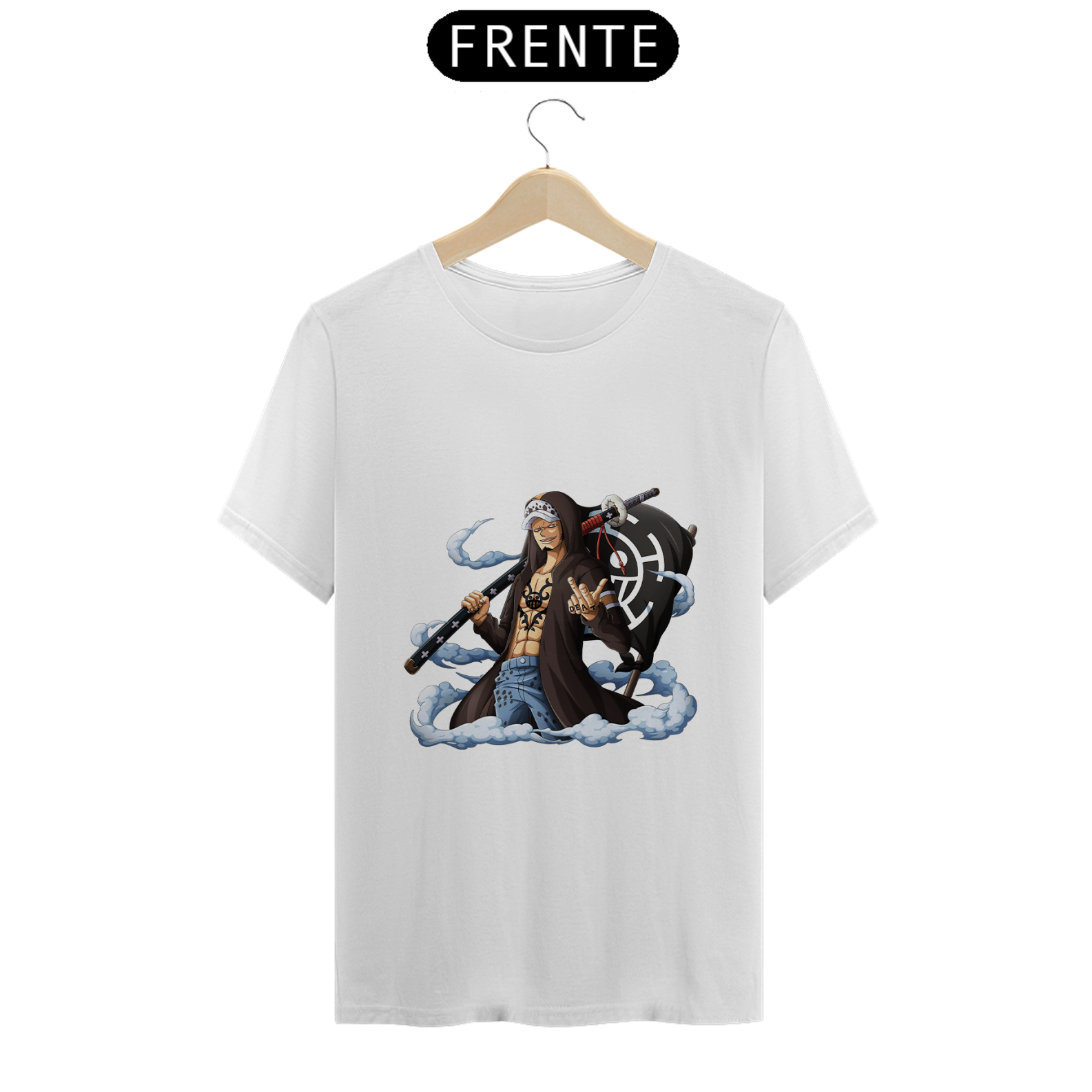 Celebre a inteligência e o carisma de Trafalgar D. Water Law com nossa camiseta inspirada neste famoso pirata e cirurgião de "One Piece". Esta camiseta é perfeita para os verdadeiros fãs da série que desejam mostrar seu apoio a um dos personagens mais intrigantes e admirados.