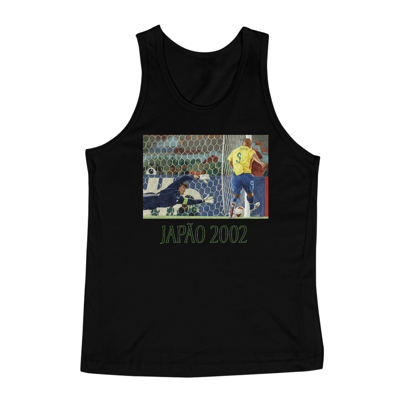 Reviva a glória do pentacampeonato brasileiro com nossa estampa exclusiva "Ronaldo 1° Gol do Penta". Esta Regata inspirada no Pós-Impressionismo de Paul Cézanne celebra o primeiro gol de Ronaldo na final da Copa do Mundo de 2002 contra a Alemanha, um momento que marcou a consagração do Brasil como a maior potência do futebol mundial. Com um toque preciso, Ronaldo abriu o caminho para a vitória por 2 a 0, consolidando sua posição como um dos maiores jogadores de todos os tempos.