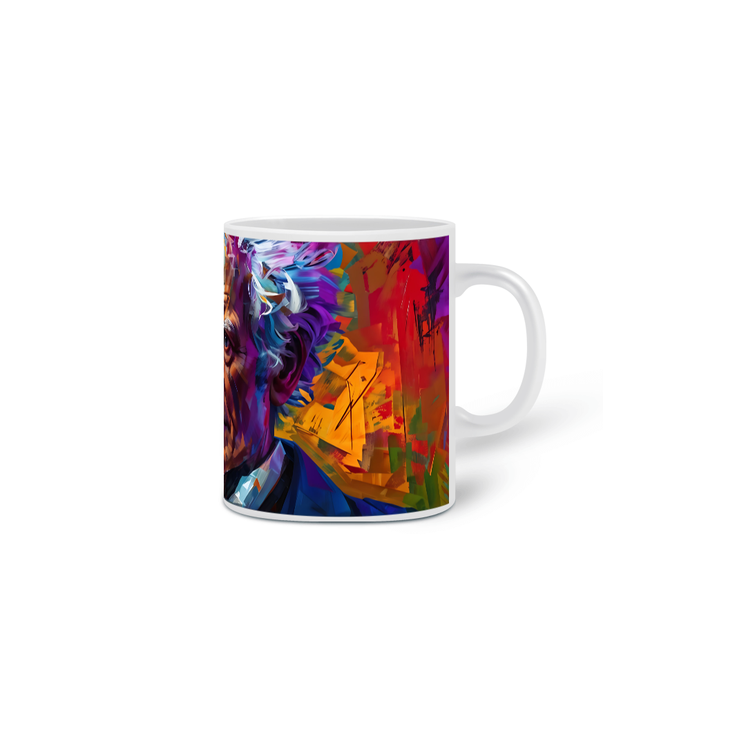 Estampa colorida do filósofo Arthur Schopenhauer em um estilo artístico moderno. As cores vivas e vibrantes destacam a presença marcante de Schopenhauer, enquanto sua expressão reflexiva transmite sua sabedoria filosófica.