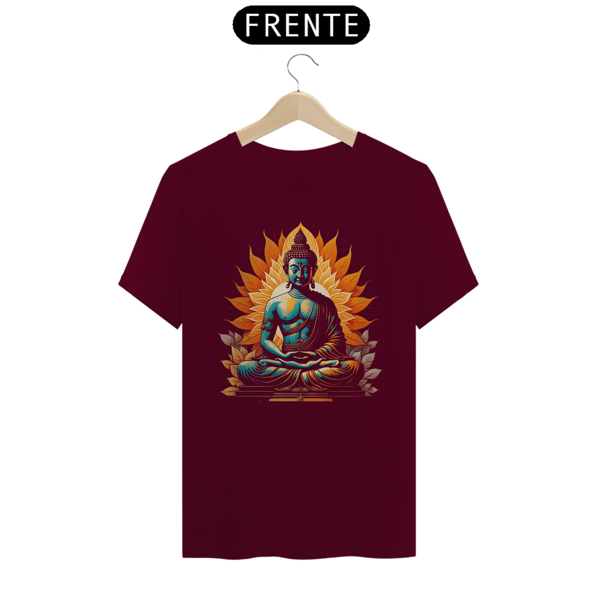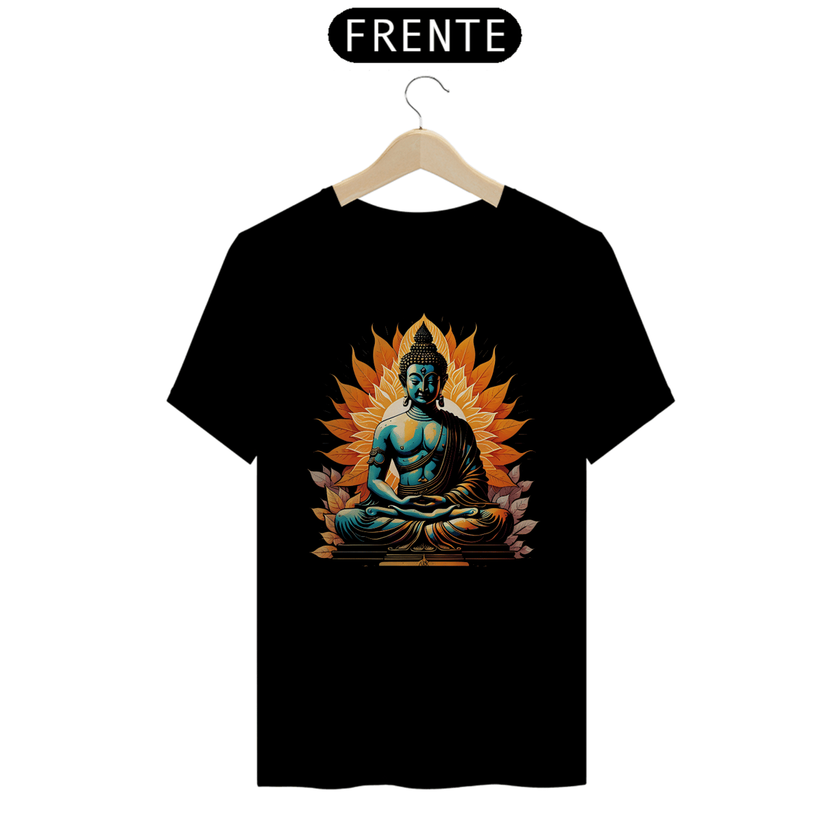A estampa da camiseta apresenta uma representação serena de Buda em meditação, com um fundo tranquilo. Buda está sentado em posição de lótus, com um sorriso suave e olhos fechados, emanando uma aura de paz e iluminação espiritual. As linhas são simples e elegantes, capturando a essência da calma e da sabedoria interior associadas a Buda. Essa estampa transmite uma mensagem de serenidade e introspecção, convidando à contemplação e ao equilíbrio interior.