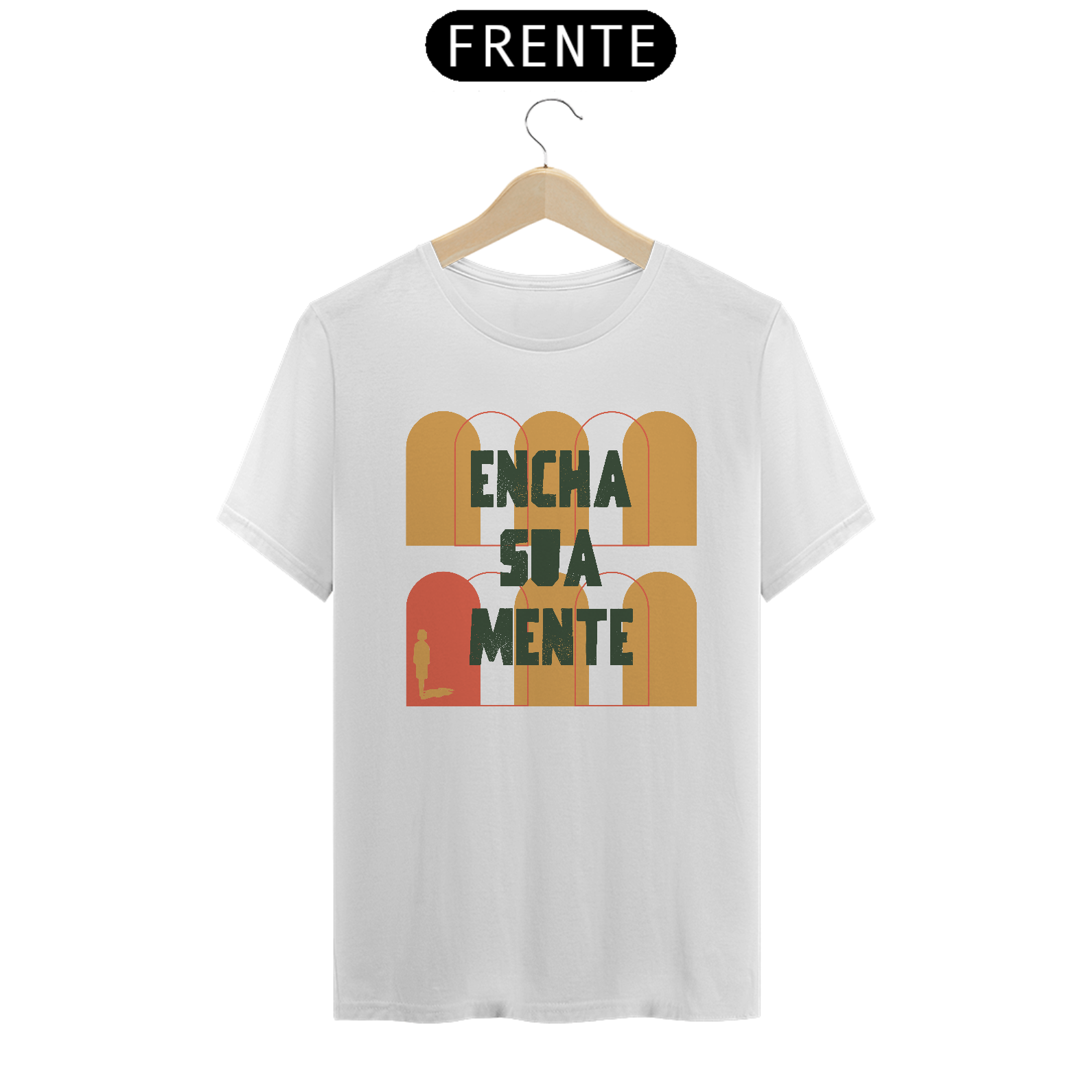 Uma camiseta com a frase "Encha sua mente" convida à expansão intelectual. Simples e poderosa, essa mensagem estimula o crescimento pessoal e a busca pelo conhecimento em um único olhar.
