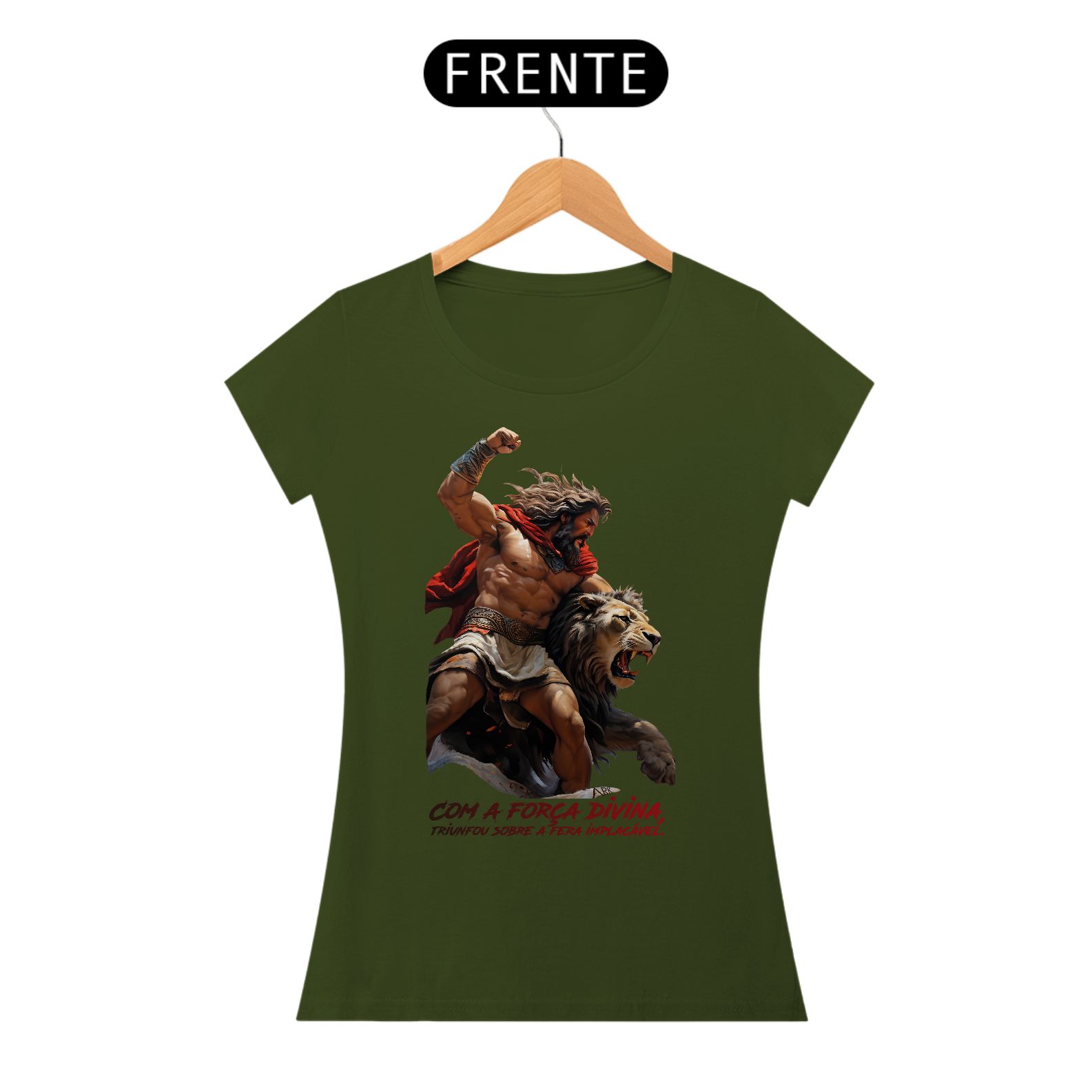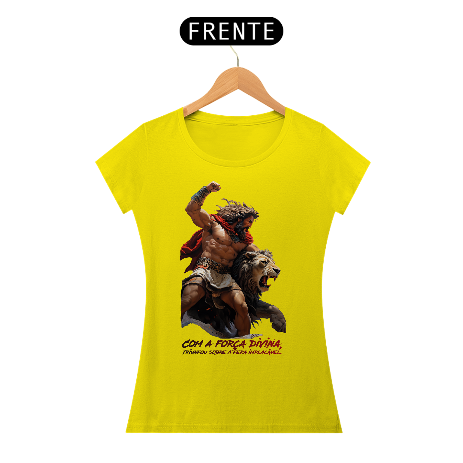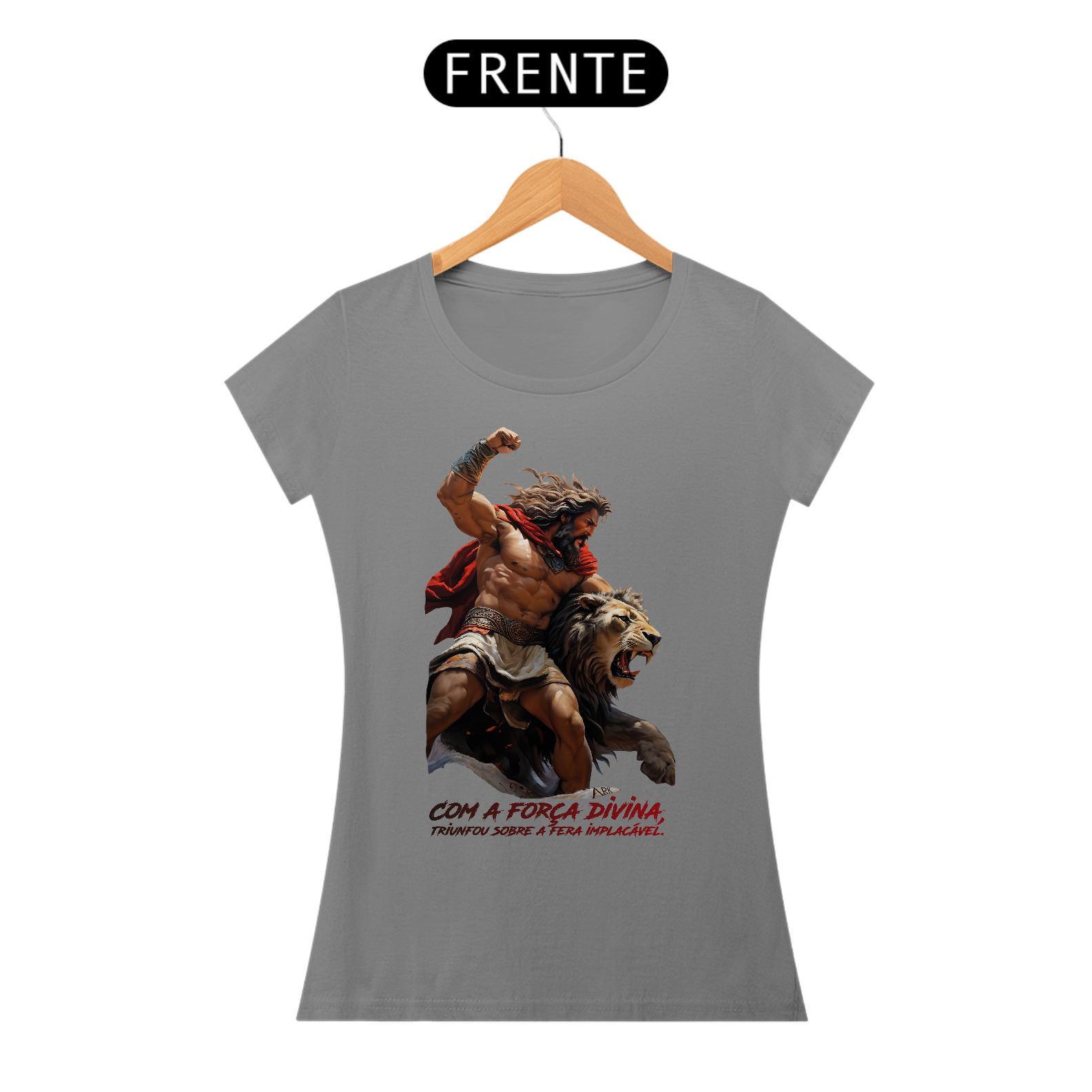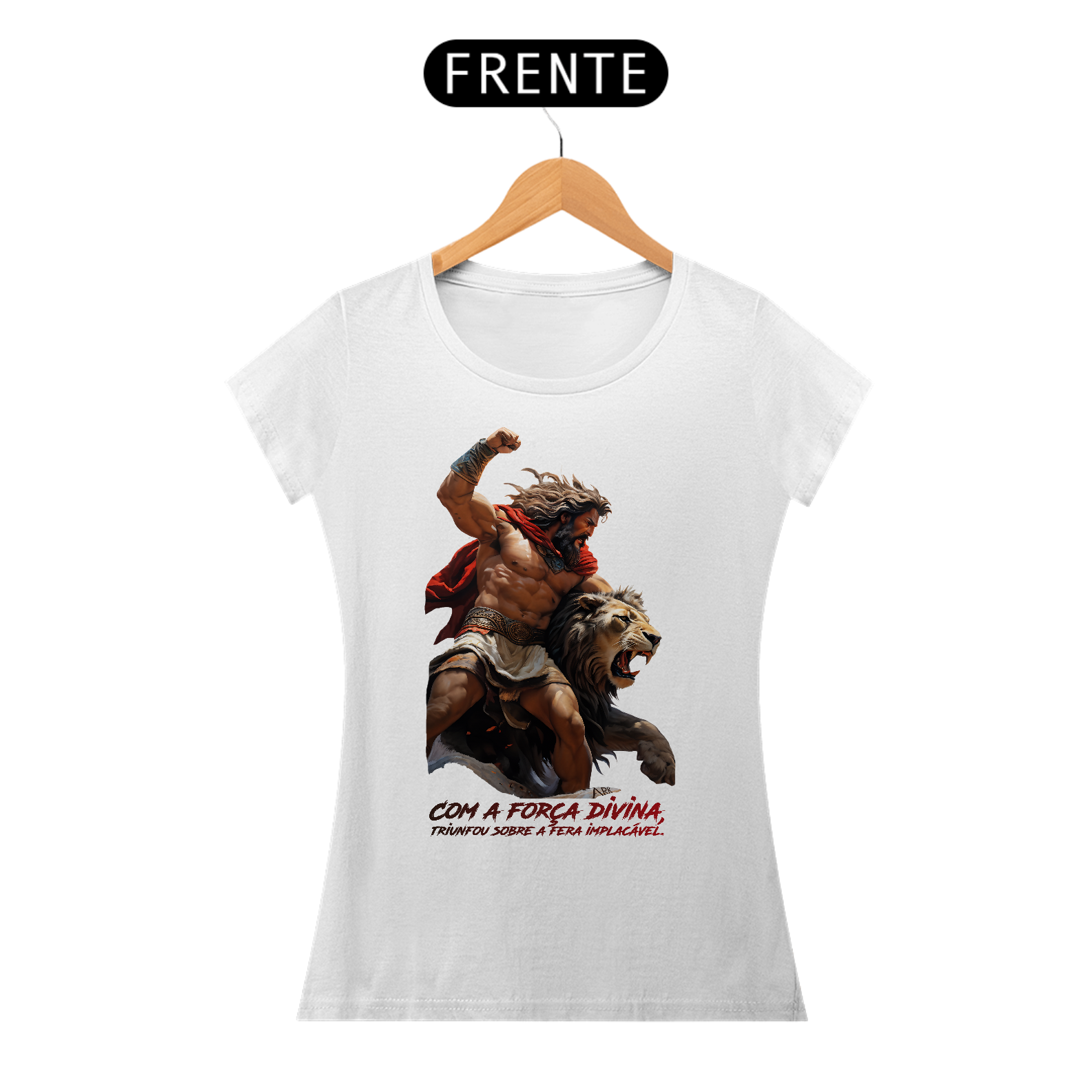 A estampa retrata o primeiro trabalho de Hércules: a captura do Leão da Nemeia. Hércules, com força e determinação, enfrenta o poderoso leão, símbolo de invencibilidade. A cena captura o momento em que Hércules, após uma árdua luta, subjuga a fera, destacando temas de coragem, resiliência e a eterna luta entre homem e natureza.