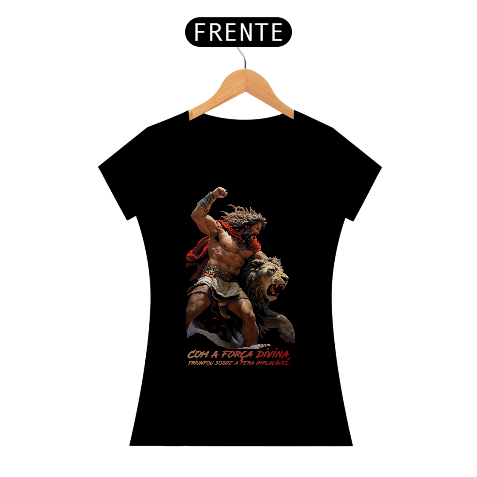 A estampa retrata o primeiro trabalho de Hércules: a captura do Leão da Nemeia. Hércules, com força e determinação, enfrenta o poderoso leão, símbolo de invencibilidade. A cena captura o momento em que Hércules, após uma árdua luta, subjuga a fera, destacando temas de coragem, resiliência e a eterna luta entre homem e natureza.