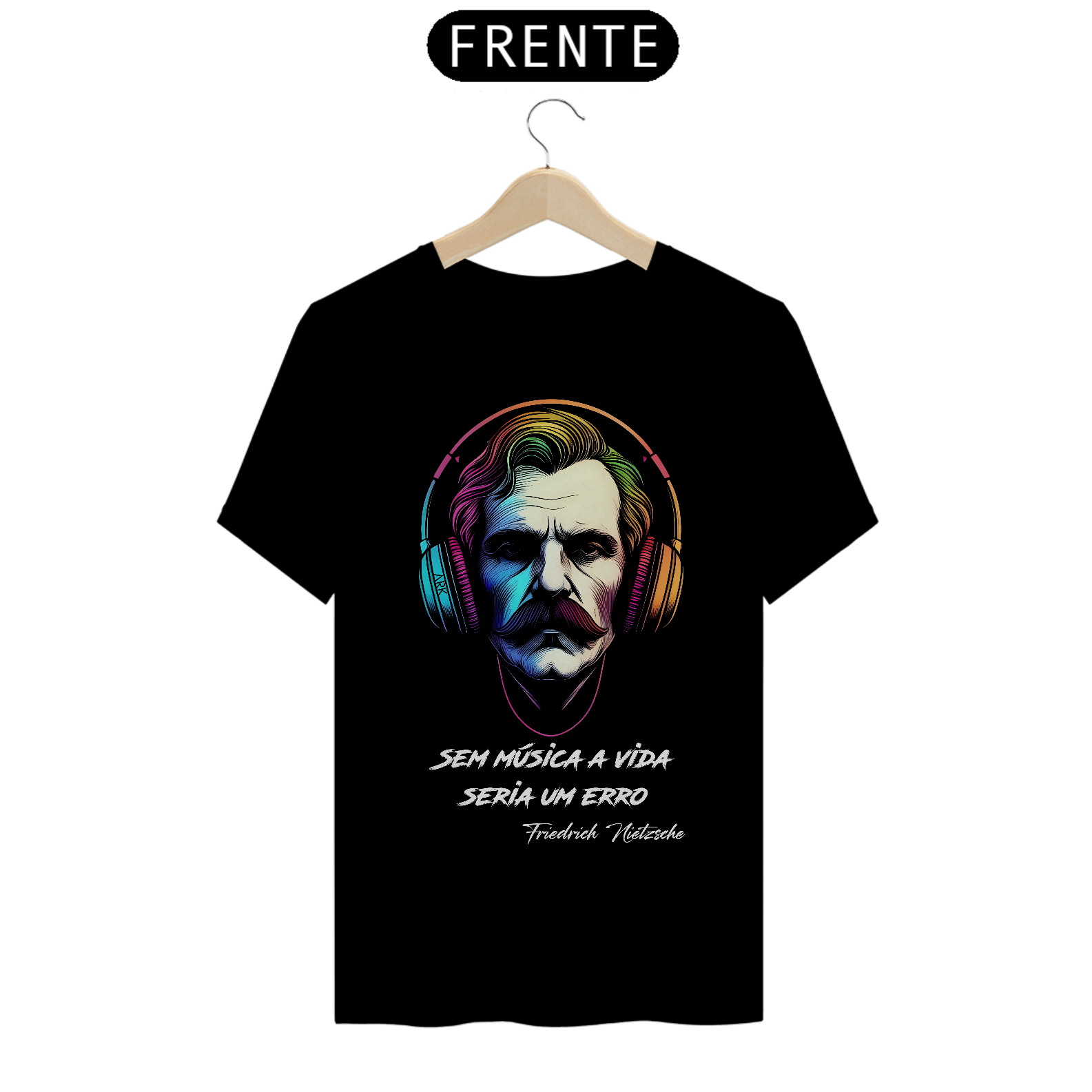 Celebre a união da filosofia e da música com esta camiseta única. Apresentando a imagem icônica de Nietzsche usando fones de ouvido, acompanhada da frase inspiradora: "Sem música, a vida seria um erro". Uma declaração de liberdade, expressão e busca pela verdade, encapsulada em estilo e sofisticação.
