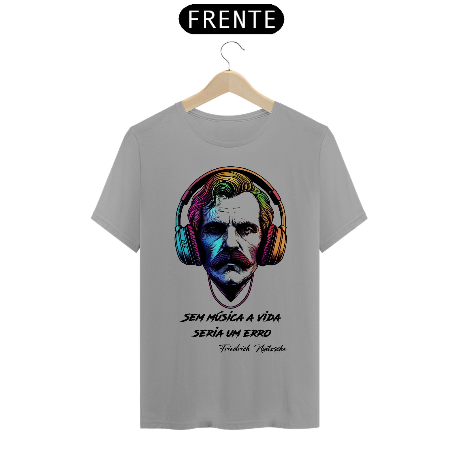 Celebre a união da filosofia e da música com esta camiseta única. Apresentando a imagem icônica de Nietzsche usando fones de ouvido, acompanhada da frase inspiradora: "Sem música, a vida seria um erro". Uma declaração de liberdade, expressão e busca pela verdade, encapsulada em estilo e sofisticação.
