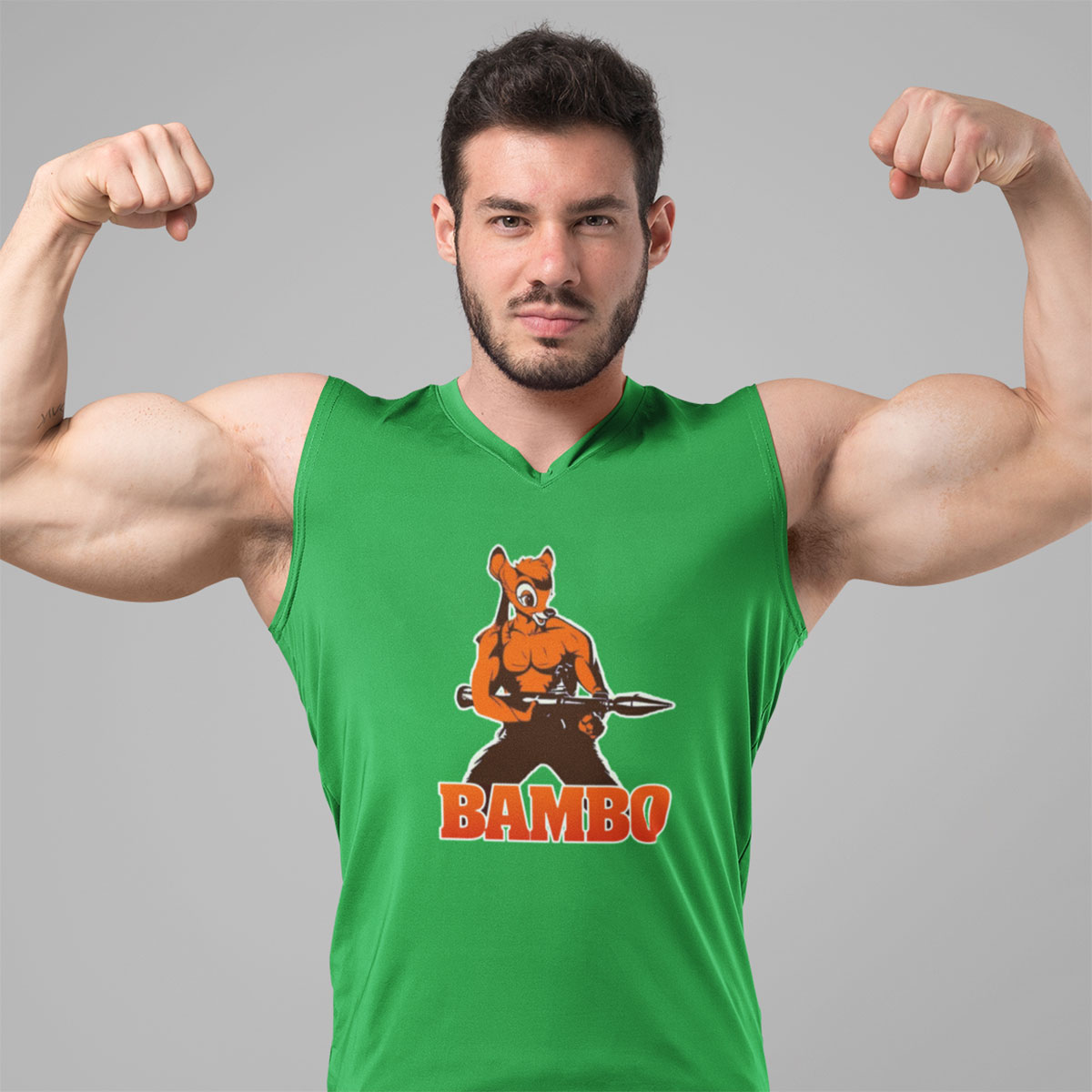 Mashup entre o desenho Bambi e o filme de ação Rambo.