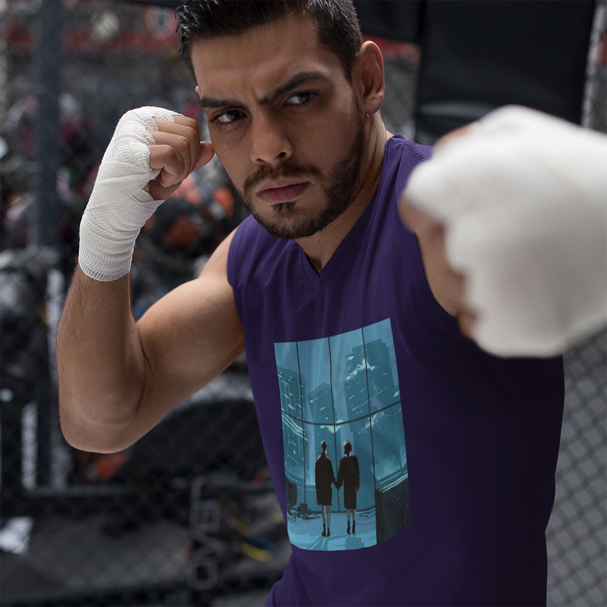 Recriação da cena final de Clube da Luta, dirigido por David Fincher e estrelado por Brad Pitt, Edward Norton e Helena Bonham Carter.