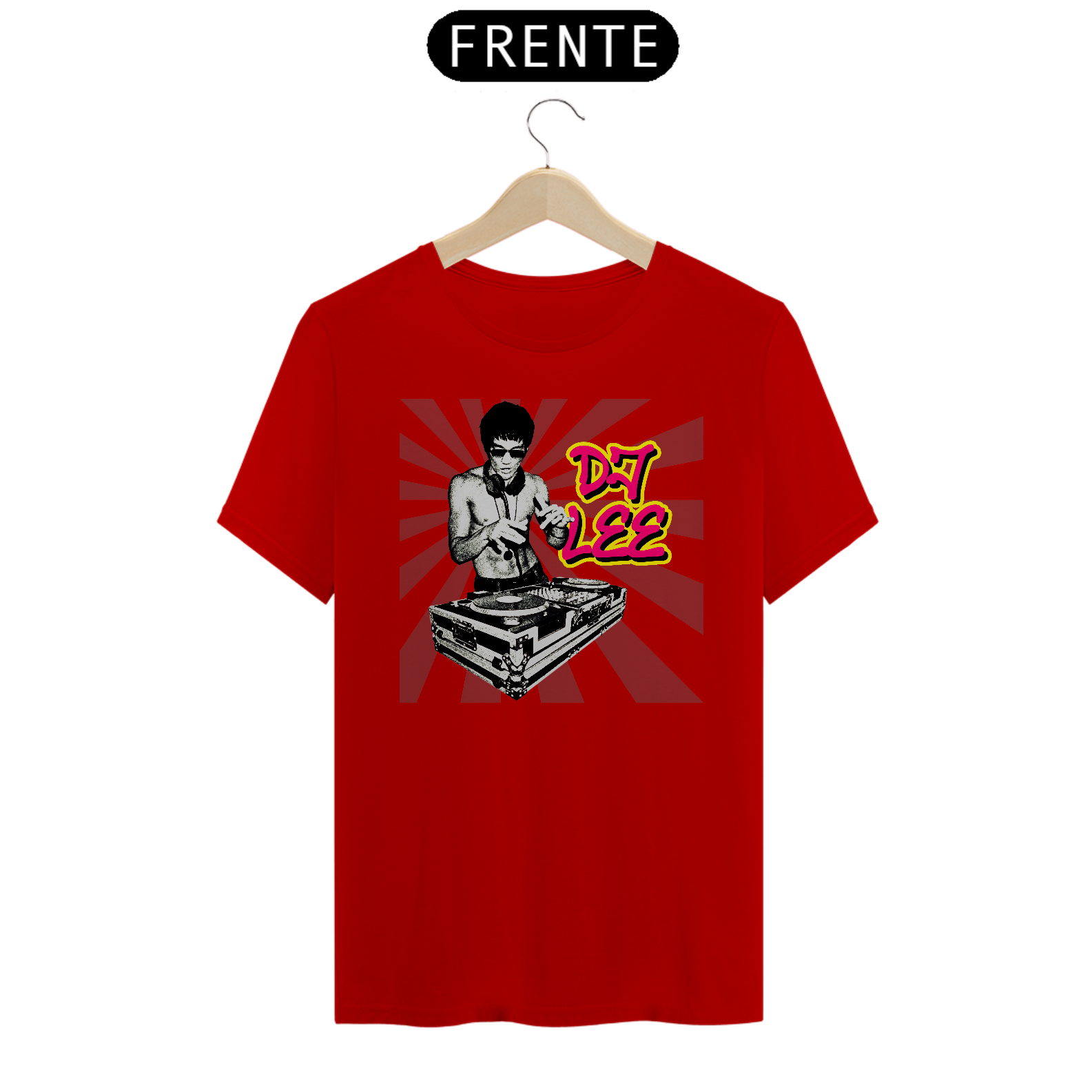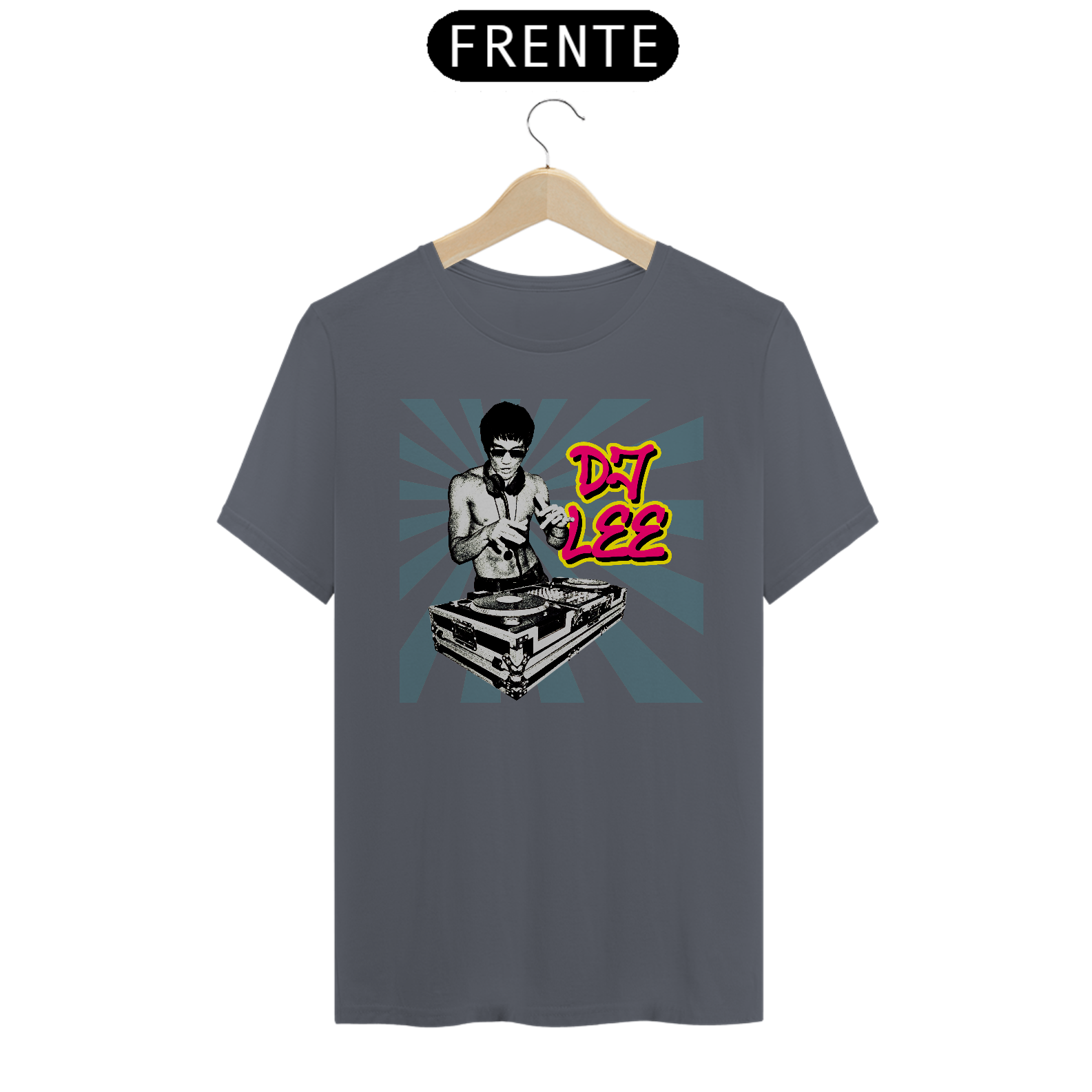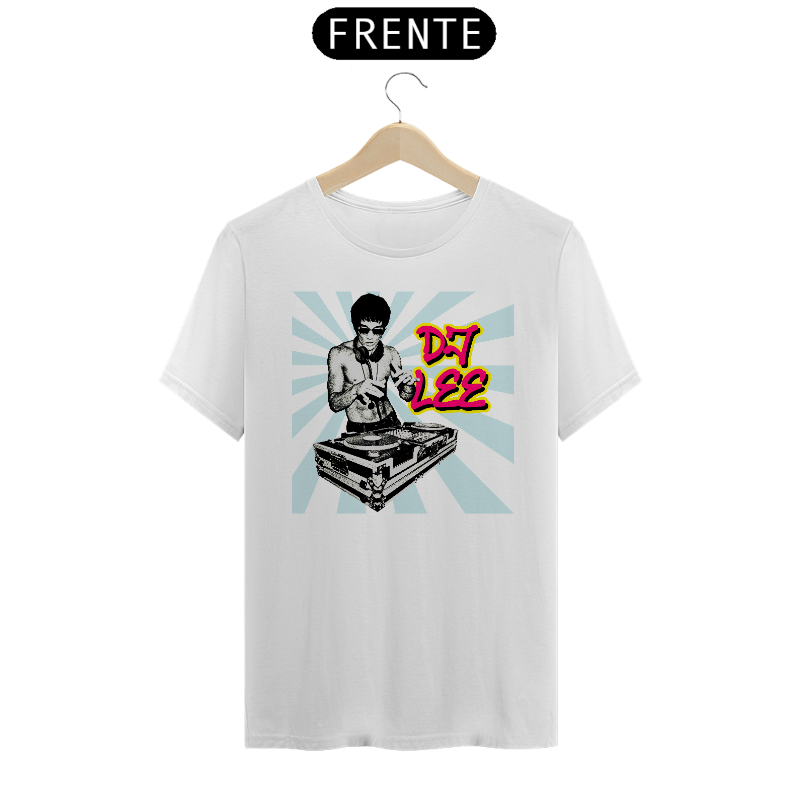 Camisa usada pelo Tony Stark em Vingadores Era de Ultron (2015), mostrando o Bruce Lee como DJ.