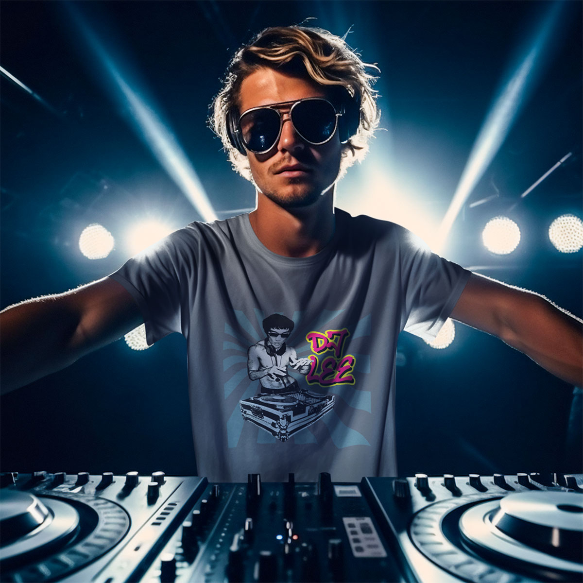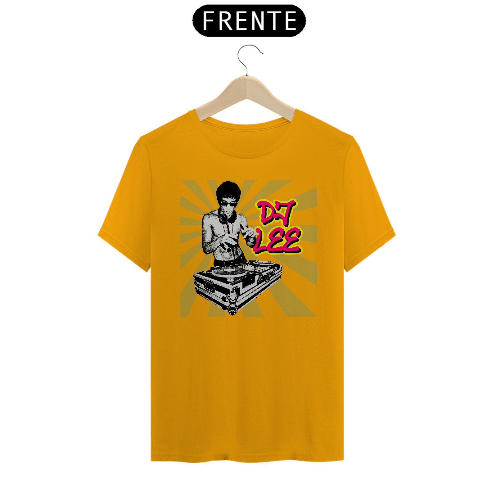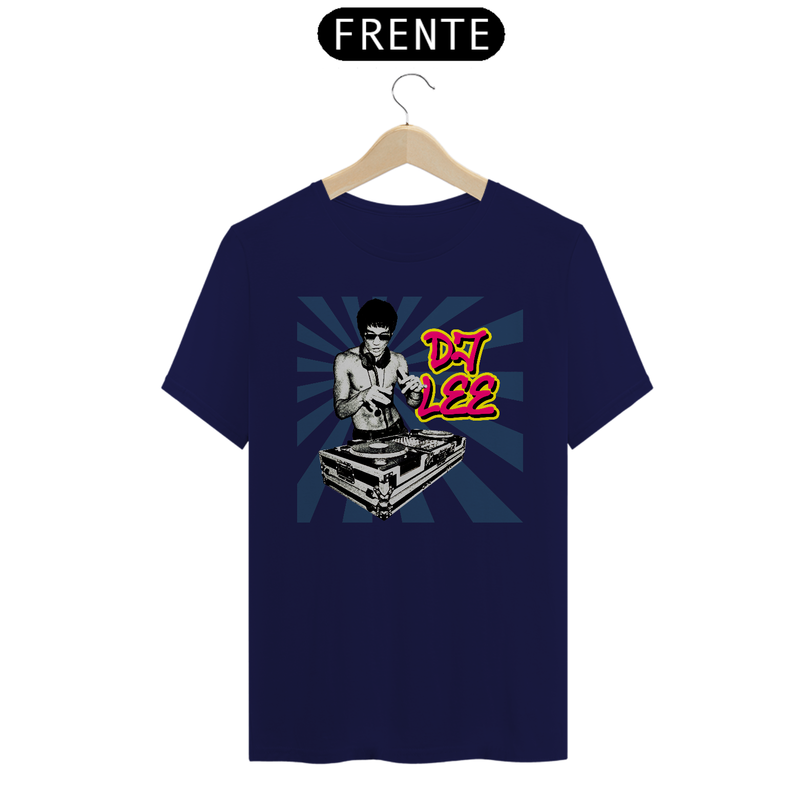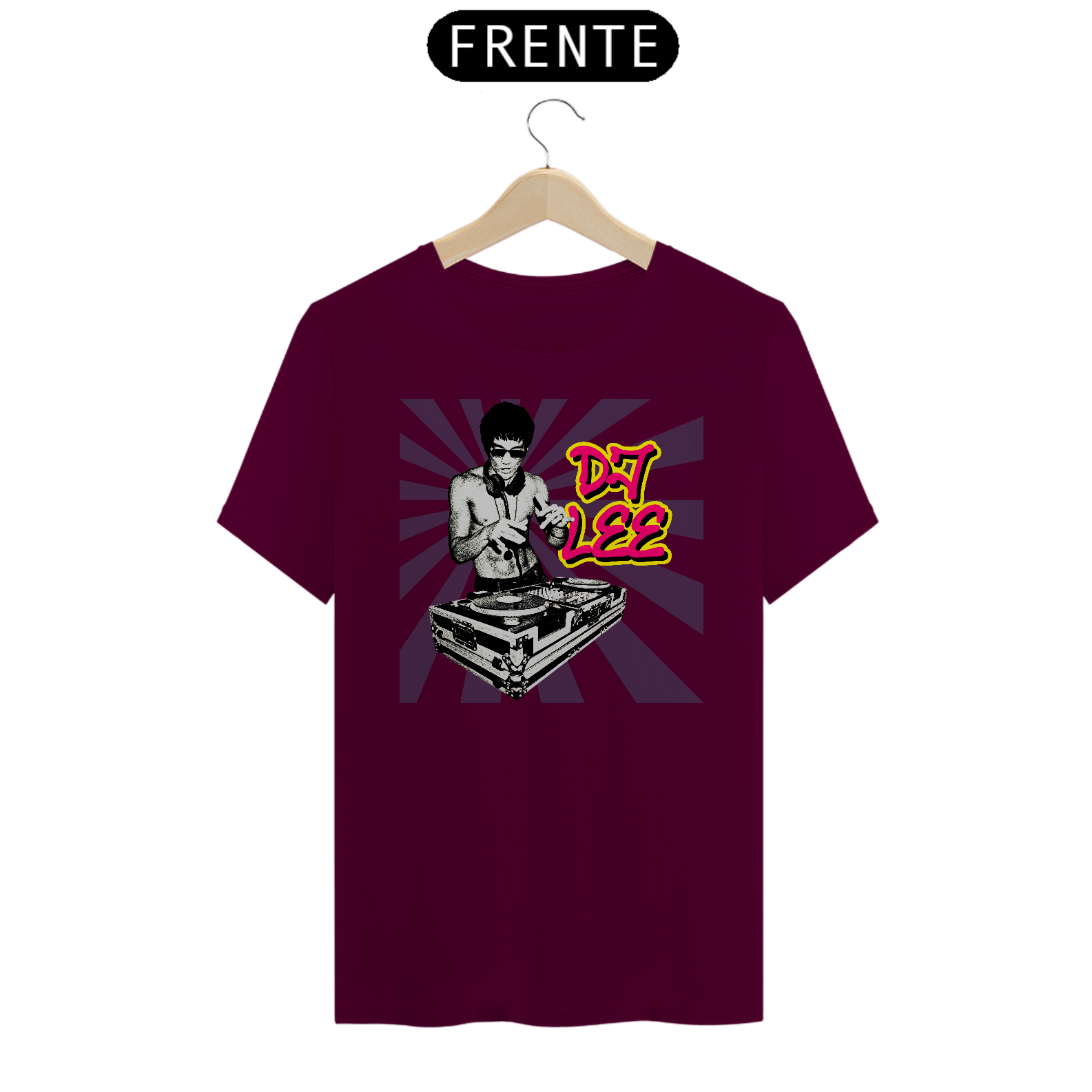 Camisa usada pelo Tony Stark em Vingadores Era de Ultron (2015), mostrando o Bruce Lee como DJ.