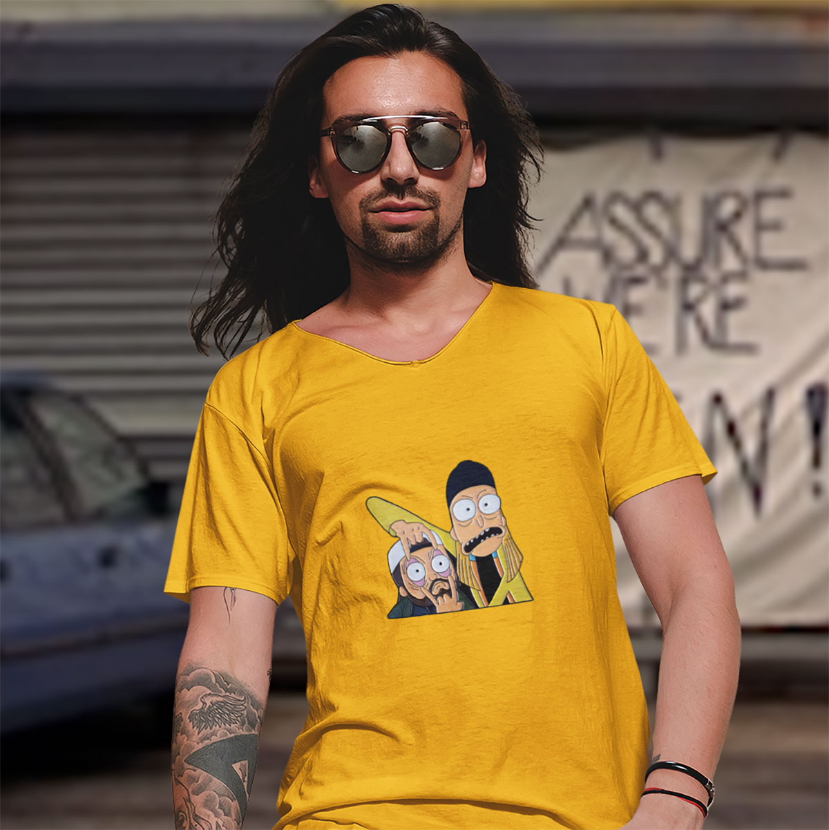 Mashup entre Rick & Morty e Jay & Silent Bob.