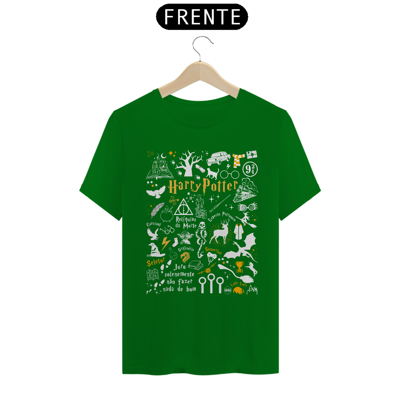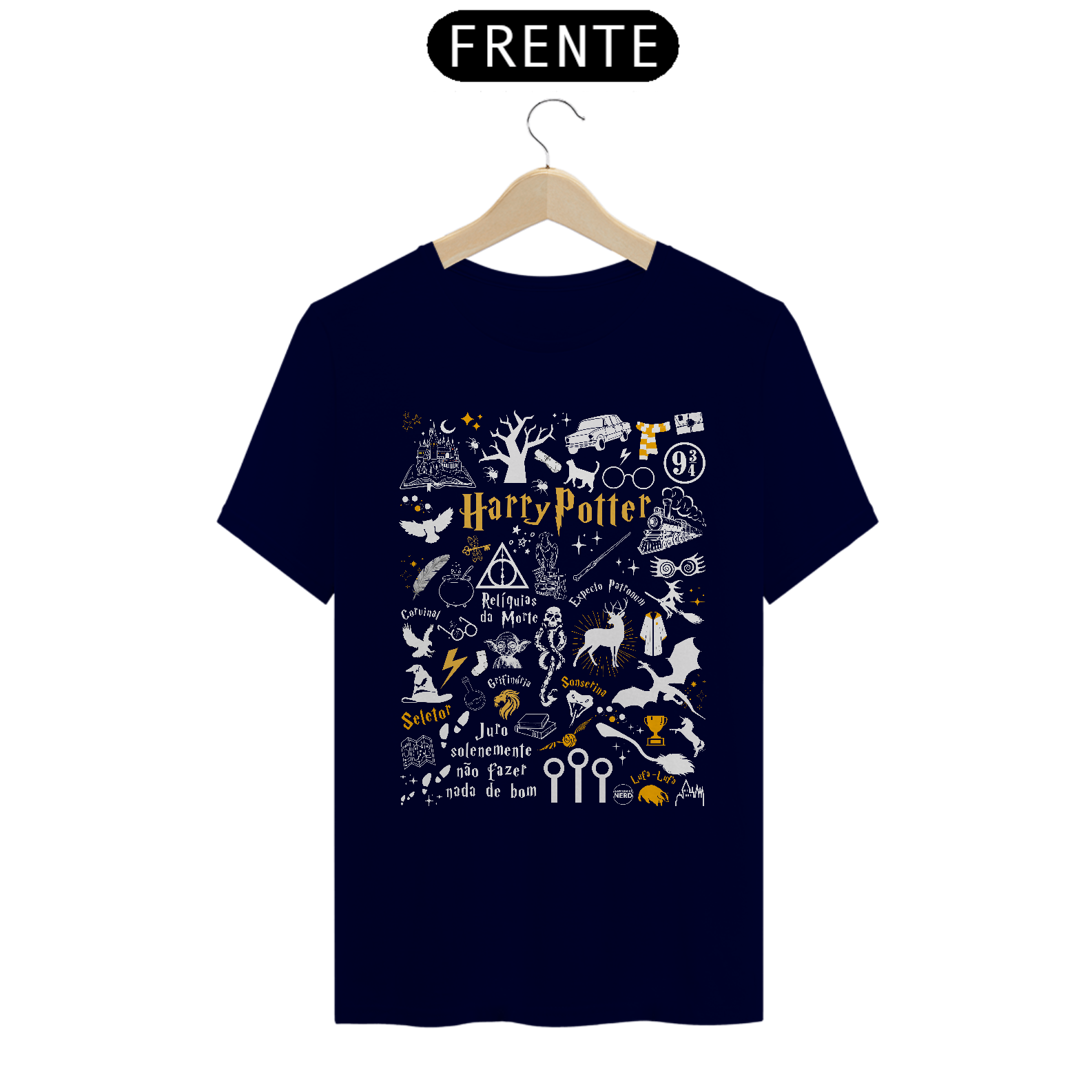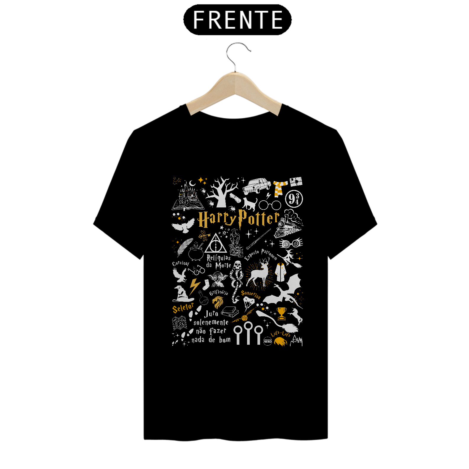 Explore a magia do mundo bruxo com esta camiseta que reúne referências incríveis de todos os filmes de Harry Potter! Feita por fãs, a estampa celebra momentos e ícones marcantes da saga, trazendo um toque especial para os apaixonados por Hogwarts.