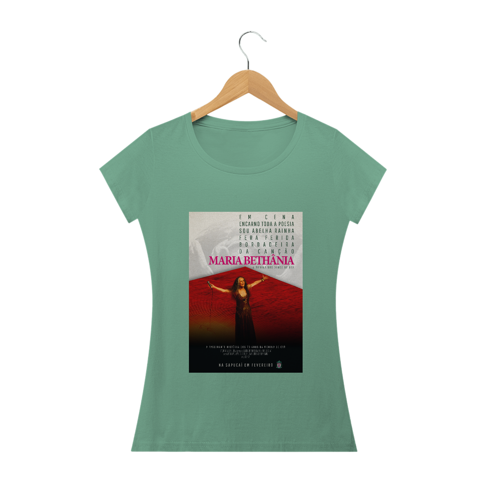 O poster em homenagem ao desfile campeão de 216, Maria Bethânia: a Menina dos Olhos de Oyá de Mangueira. Inspirado no vencedor do Oscar do mesmo ano, Spotlight, de Tom McCarthy.