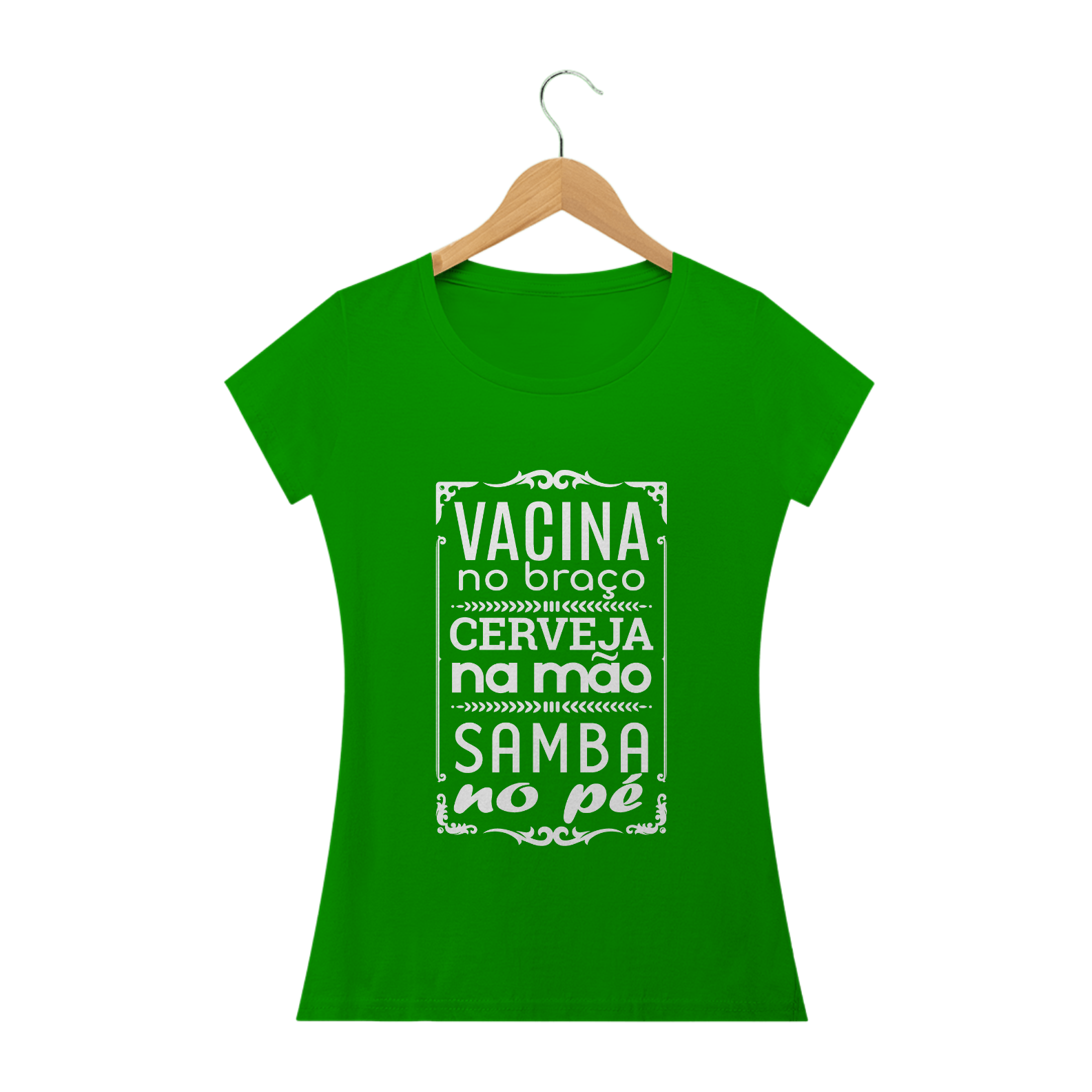 A camiseta da sambista que vai curtir o carnaval devidamente imunizada.