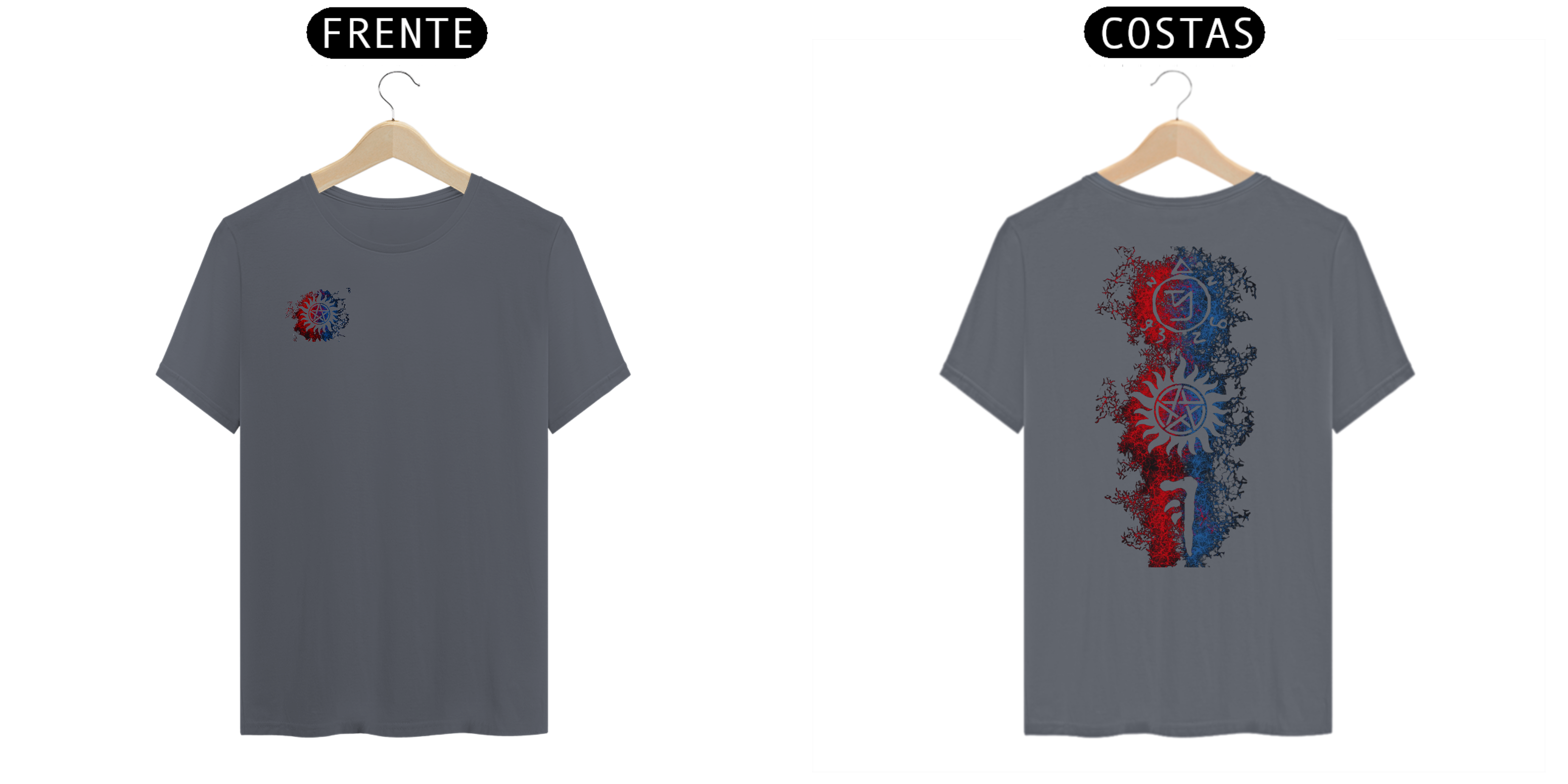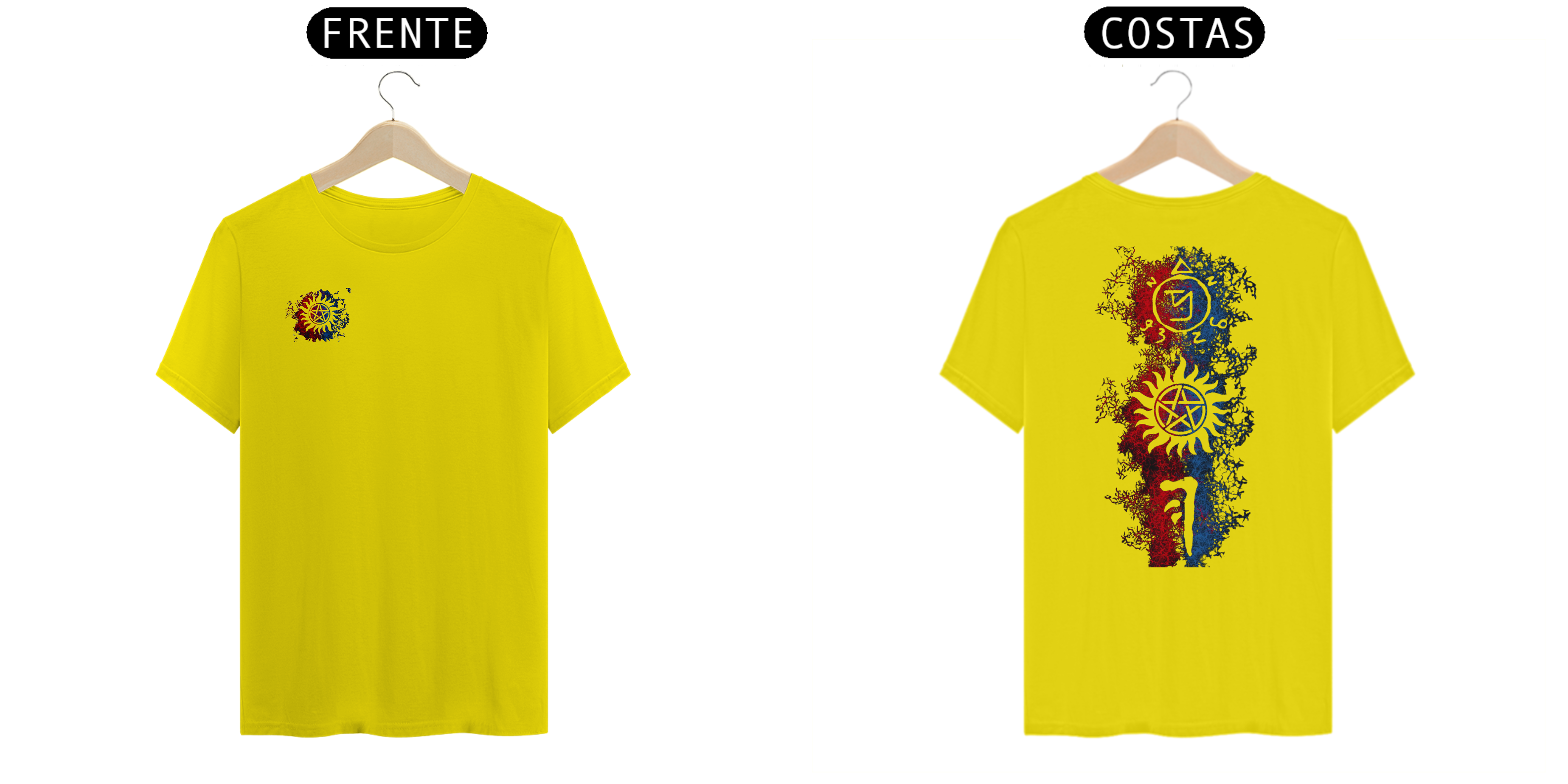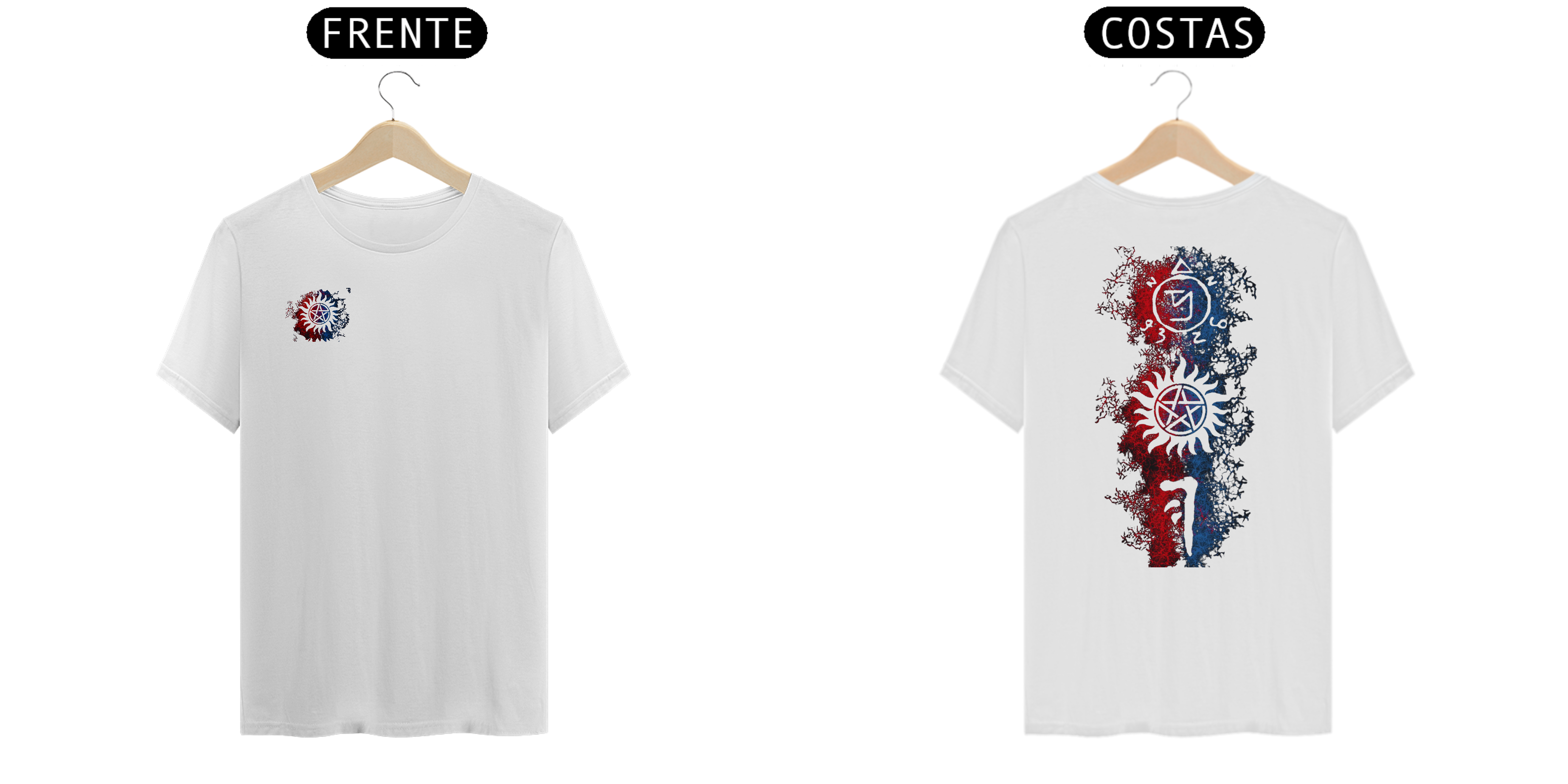 Celebre o mundo sobrenatural com os símbolos icônicos usados pelos Irmãos Winchester. Esta estampa apresenta uma coleção dos poderosos símbolos usados pelos caçadores de criaturas sobrenaturais. Cada símbolo representa uma conexão com o oculto e uma arma contra o mal. Mostre seu espírito de caçador com "Símbolos dos Irmãos Winchester" e embarque em uma jornada repleta de mistério, suspense e coragem.